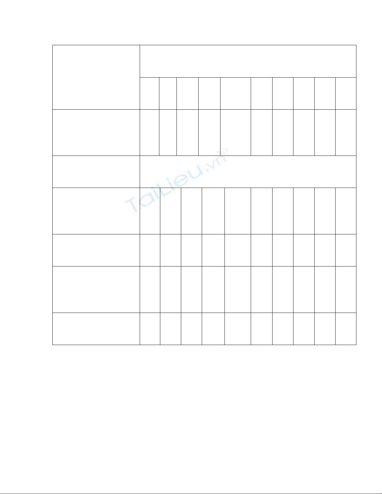 Chuẩn bị thang mẫu theo bảng sau: