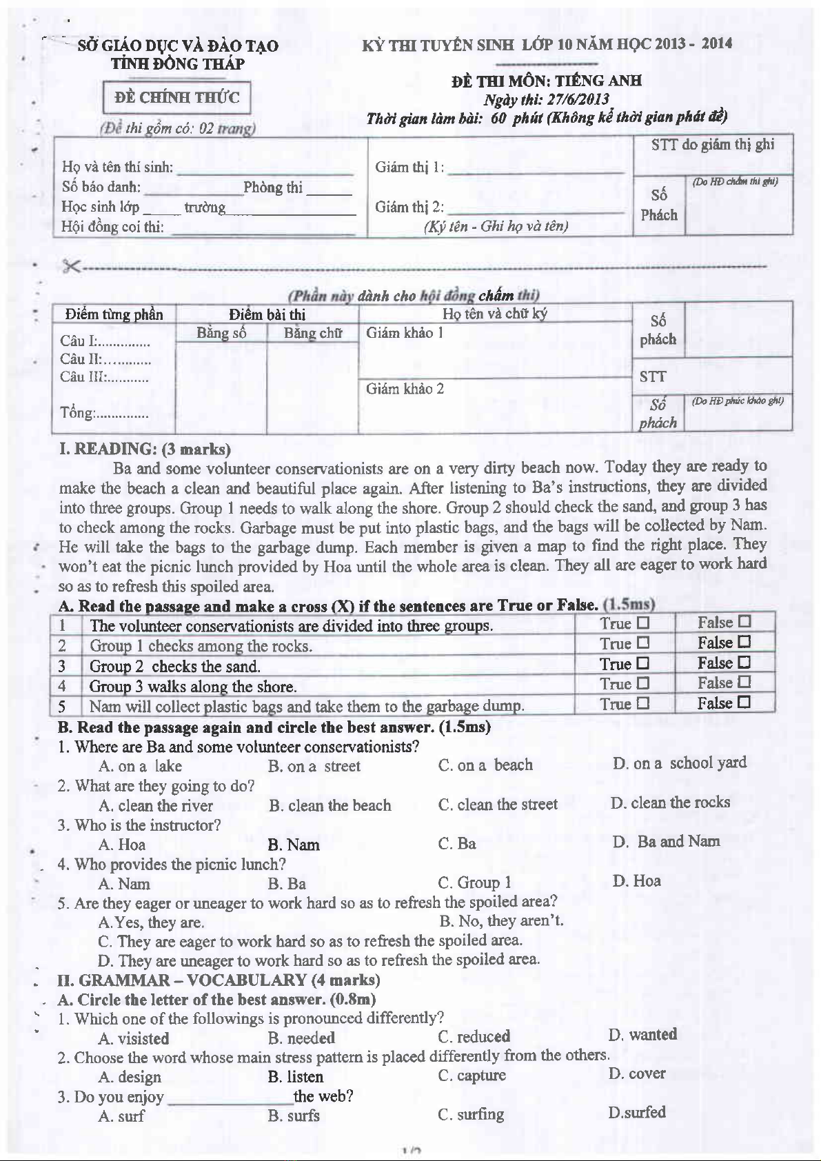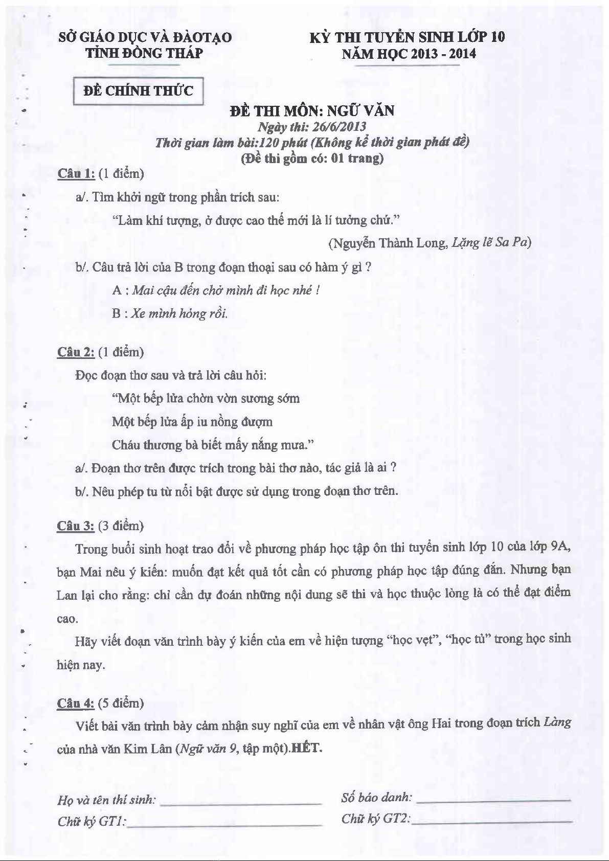 4 thi tuyển sinh lớp 10 (2013-2014) - GD&ĐT Đồng Tháp - Kèm Đ.án