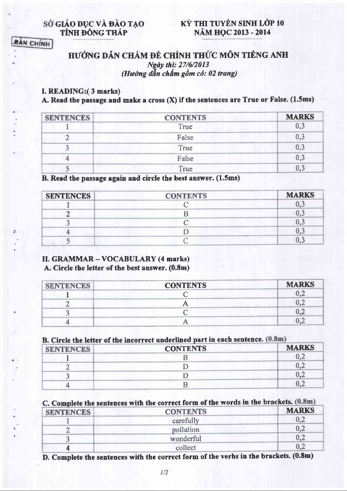 4 Đề thi tuyển sinh môn Tiếng Anh, Ngữ văn, Vật lí và môn Toán lớp 10 năm 2013-2014 của Sở Giáo dục và Đào tạo tỉnh Đồng Tháp tư liệu này sẽ giúp các bạn ôn tập lại kiến thức đã học, có cơ hội đánh giá lại năng lực của mình trước kỳ thi sắp tới. Chúc các bạn thành công.