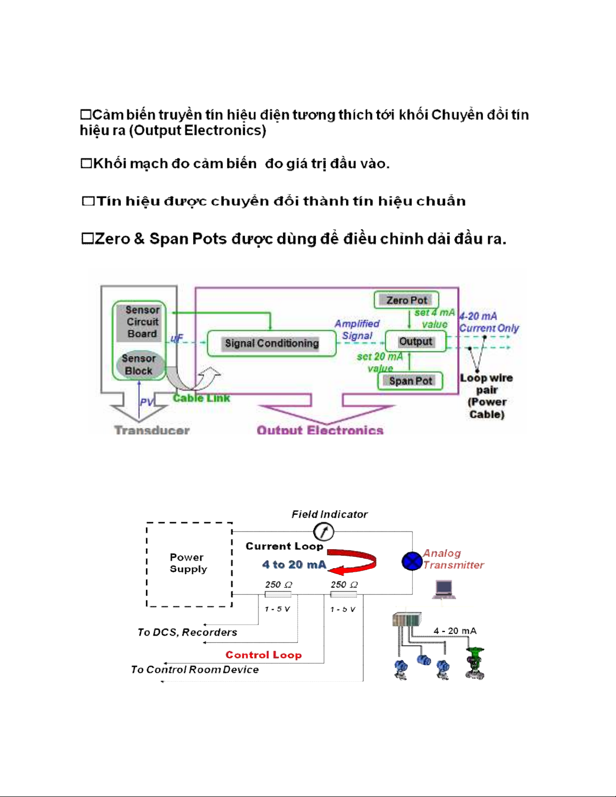 bo mạch điện tử . Ở đây thường là chuẩn 4 – 20mA .