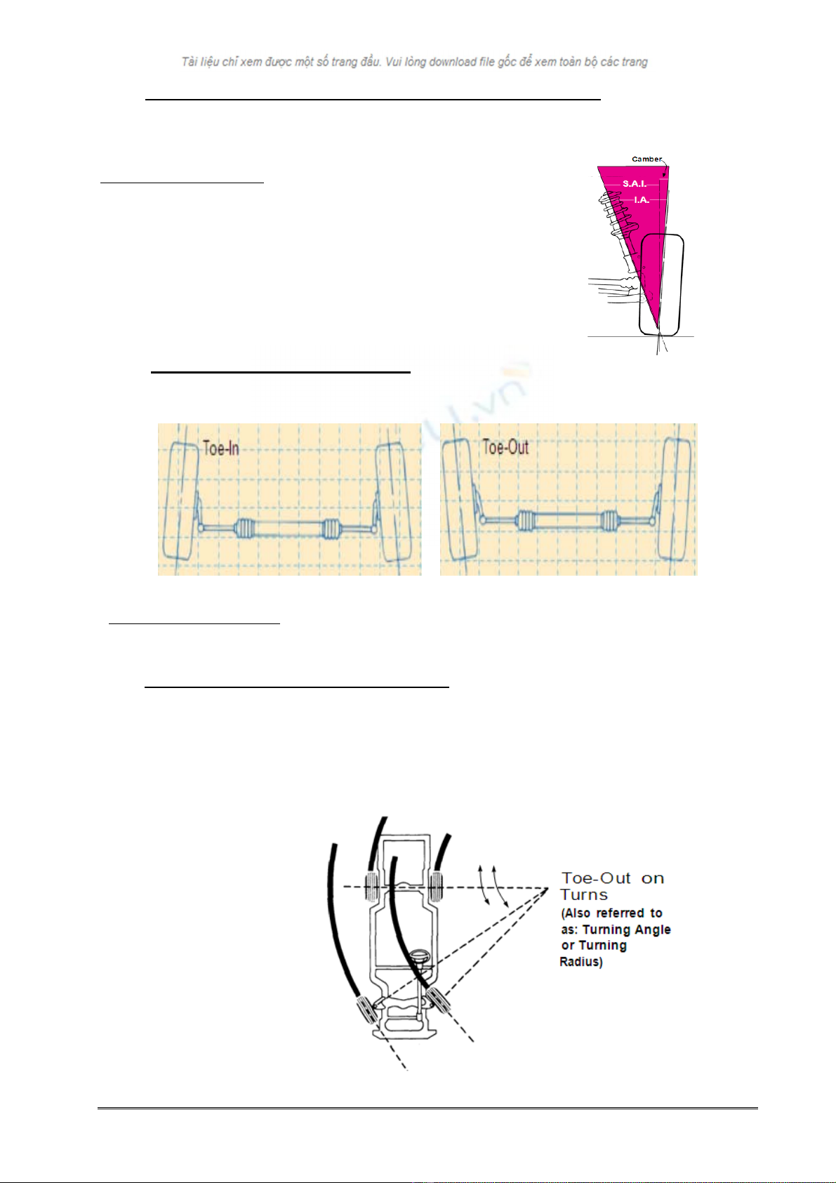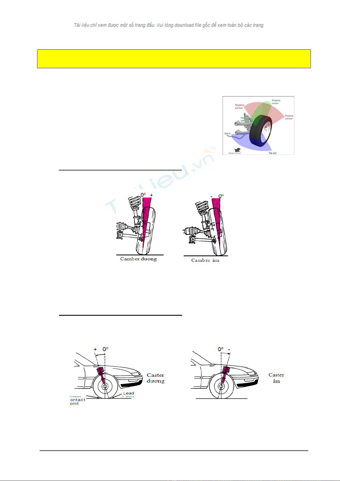 + Độ chụm bánh xe (toe in, toe out) .