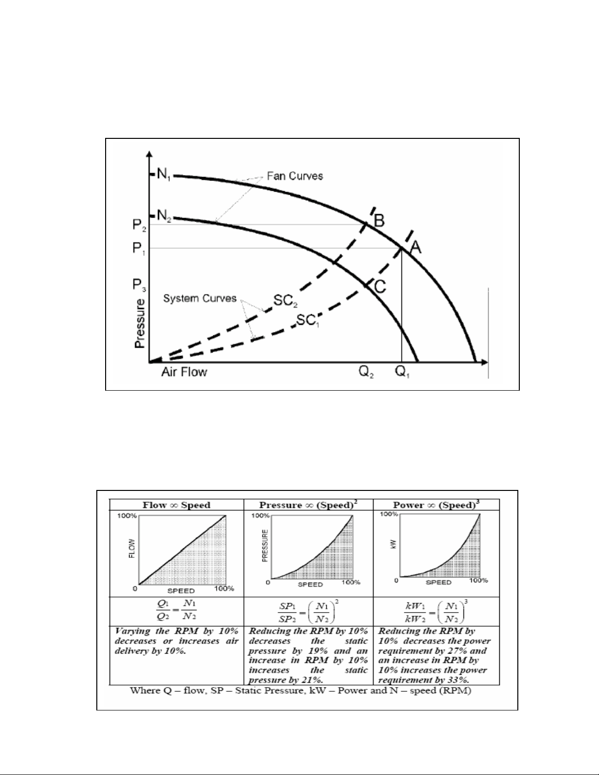 thay đổi áp suất đẩy và công suất yêu cầu để quạt hoạt động với tốc độ mới. Hình 5 minh hoạ