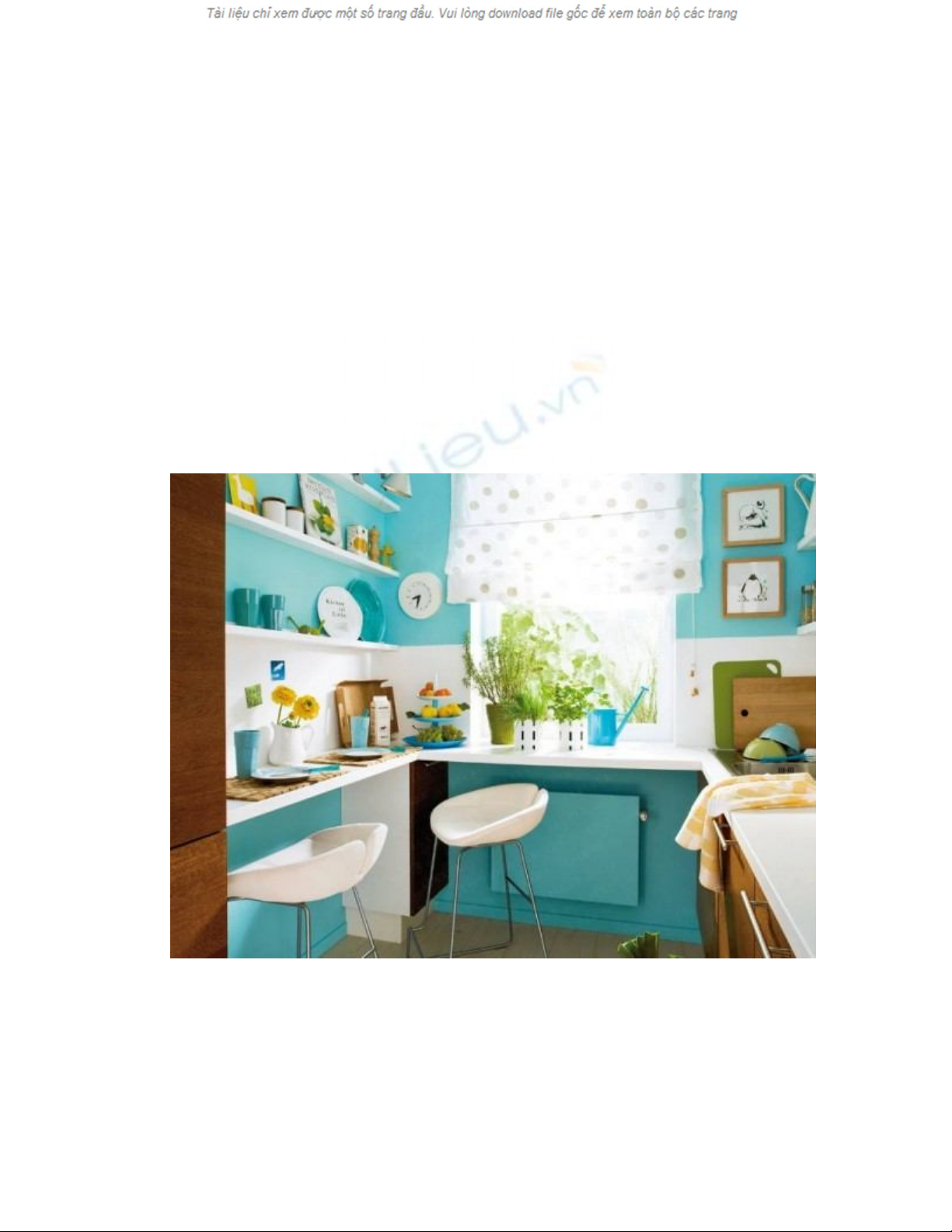 nhỏ hẹp của căn bếp này. Màu xanh của vài chậu cây nhỏ