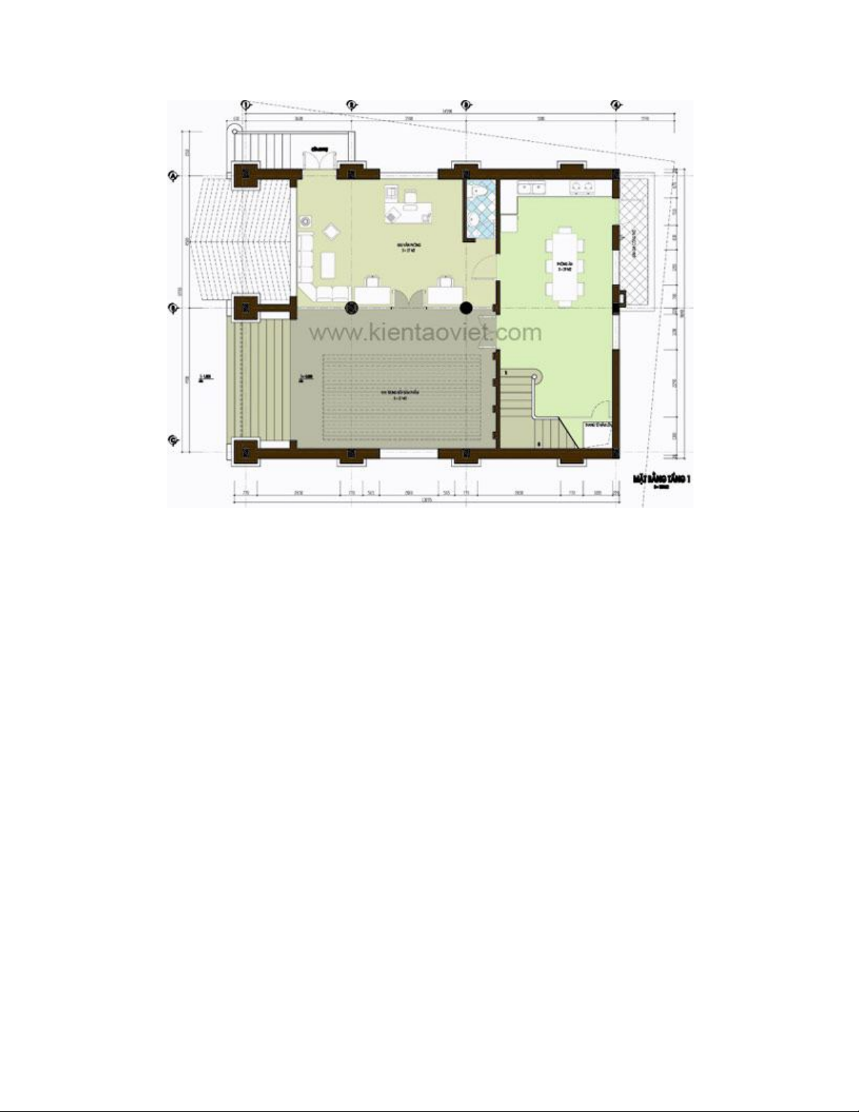 rộng 27m2 thiết kế theo phong cách cổ việt nam. Tại khu cầu thang bố trí một khu
