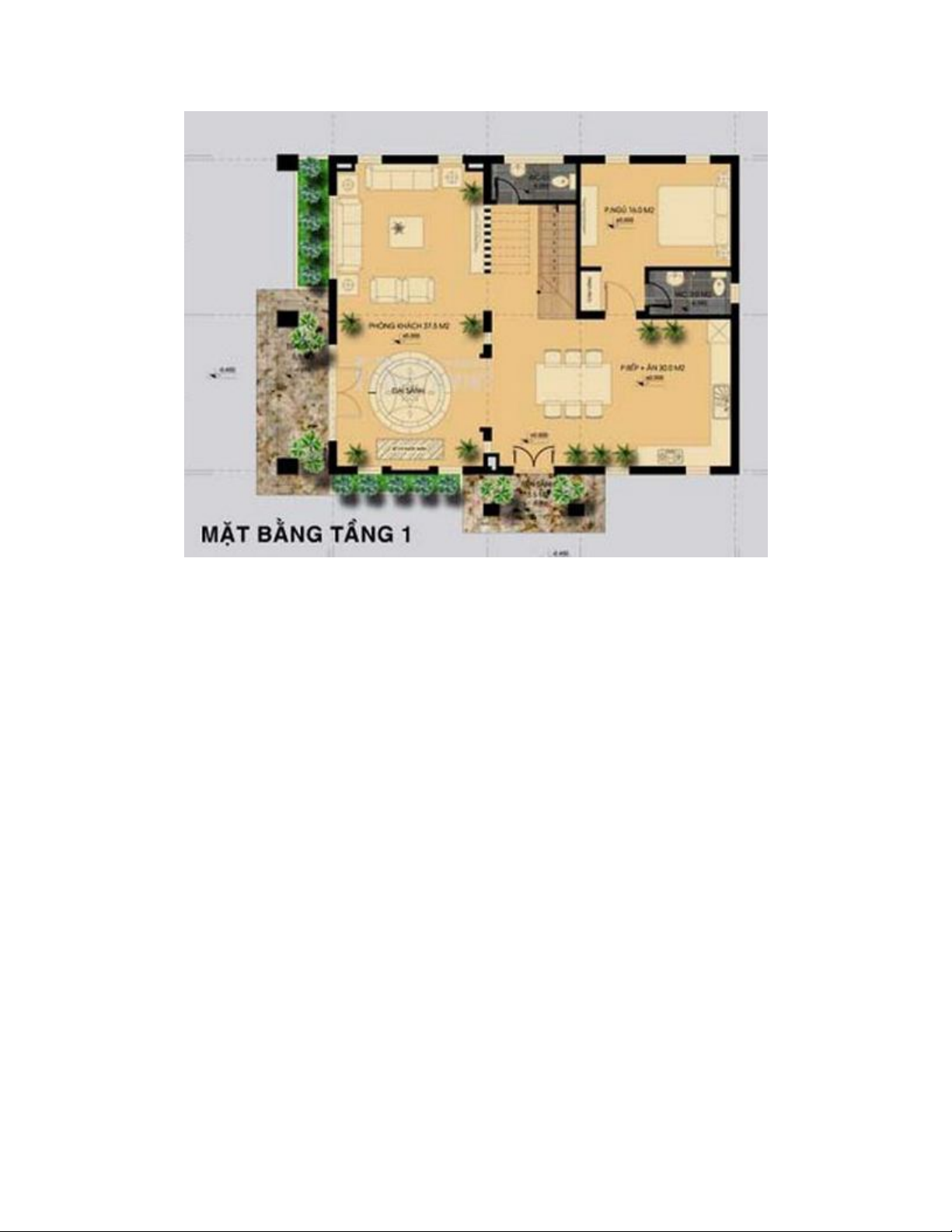 Tầng 1 gồm 1 Phòng khách, 1 Phòng bếp ăn, 1 phòng ngủ có wc riêng và 1 wc