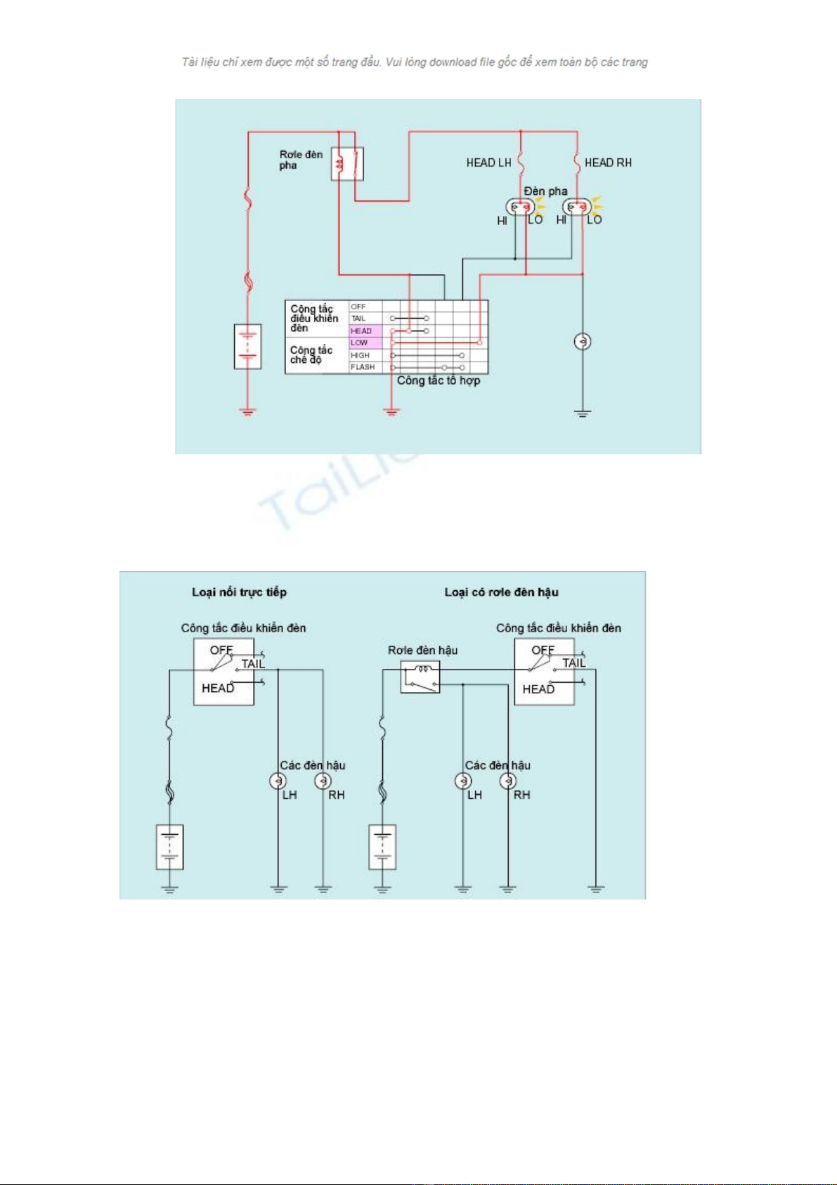 Có hai lo i h th ng đèn pha khác nhau tuỳ theo chúng có thi t b đi n nh r le đèn pha vàạ ệ ố ế ị ệ ư ơ
