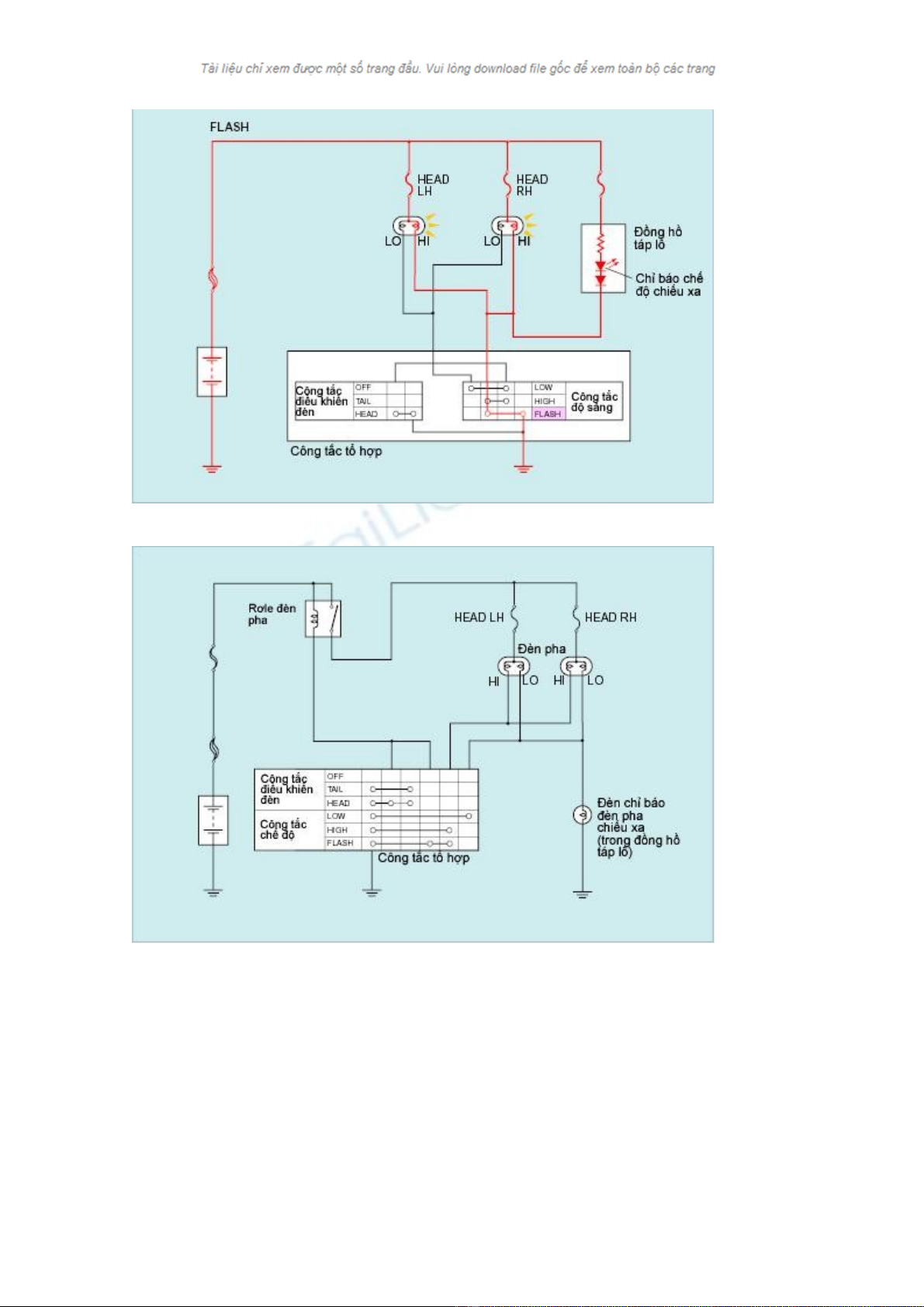 Khi công t c đi u khi n đèn d ch chuy n v v trí FLASH, thì r le đèn pha b t lên và cácắ ề ể ị ể ề ị ơ ậ