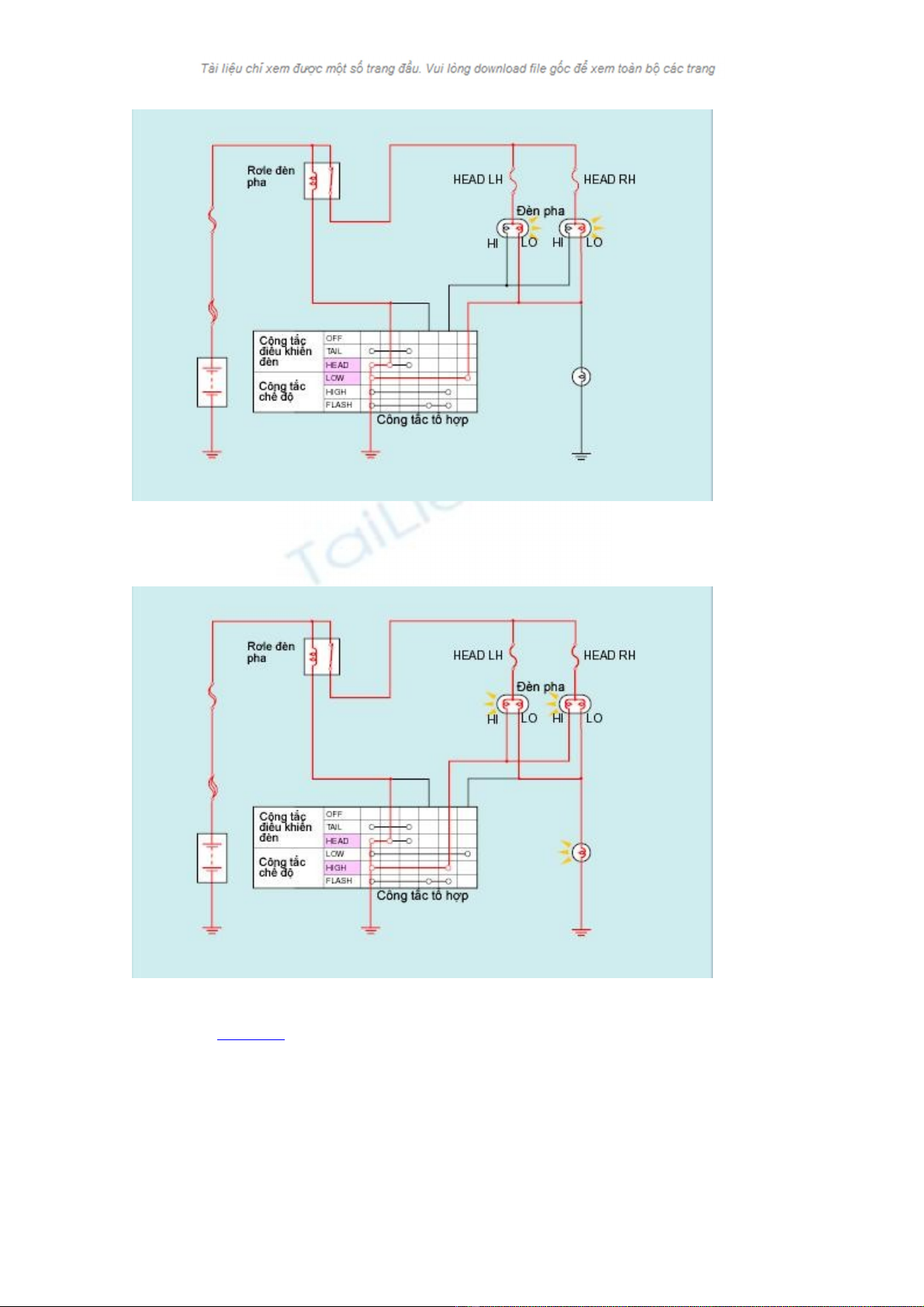 Khi công t c đi u khi n đèn d ch chuy n v v trí HEAD (LOW), thì r le đèn pha đ c b tắ ề ể ị ể ề ị ơ ượ ậ