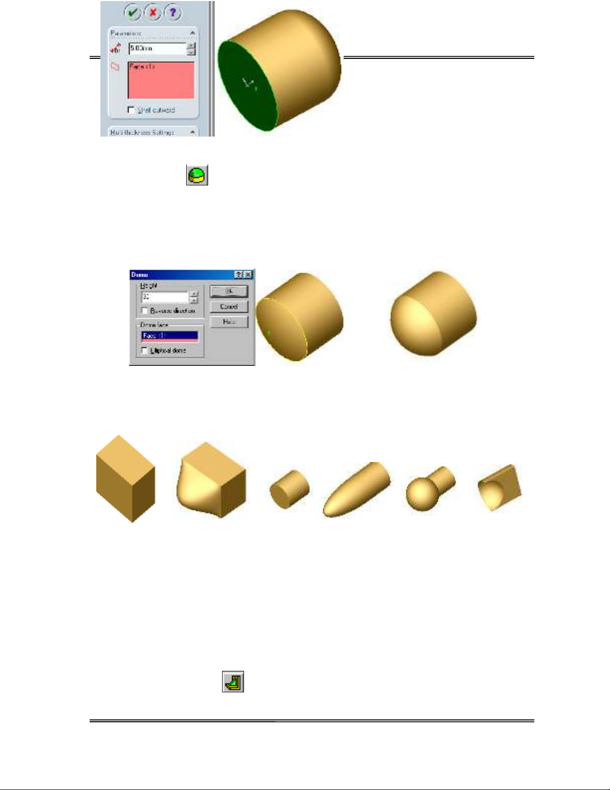 H×nh 5.8. b, e: Sau khi Dome c¸c khèi ë h×nh 5.8 a, c.