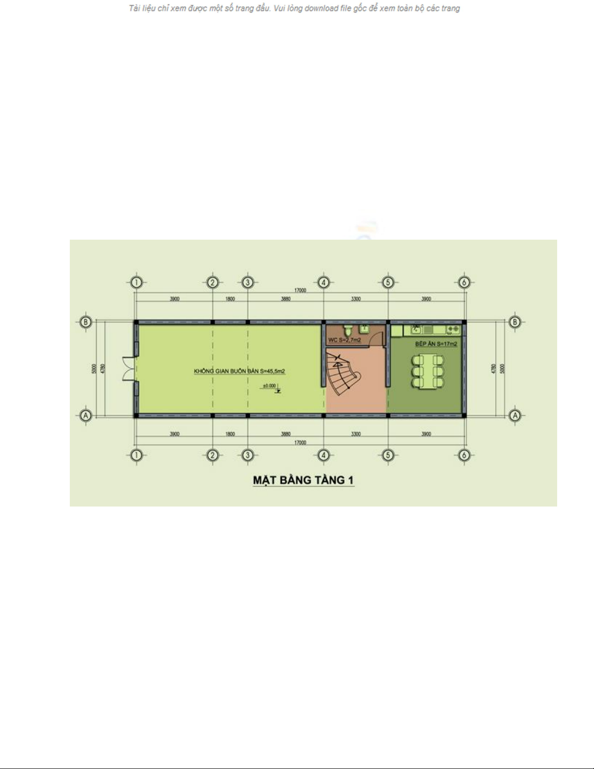- Tầng 1: Không gian kinh doanh ở mặt tiền trước chiếm khoảng nửa diện tích.