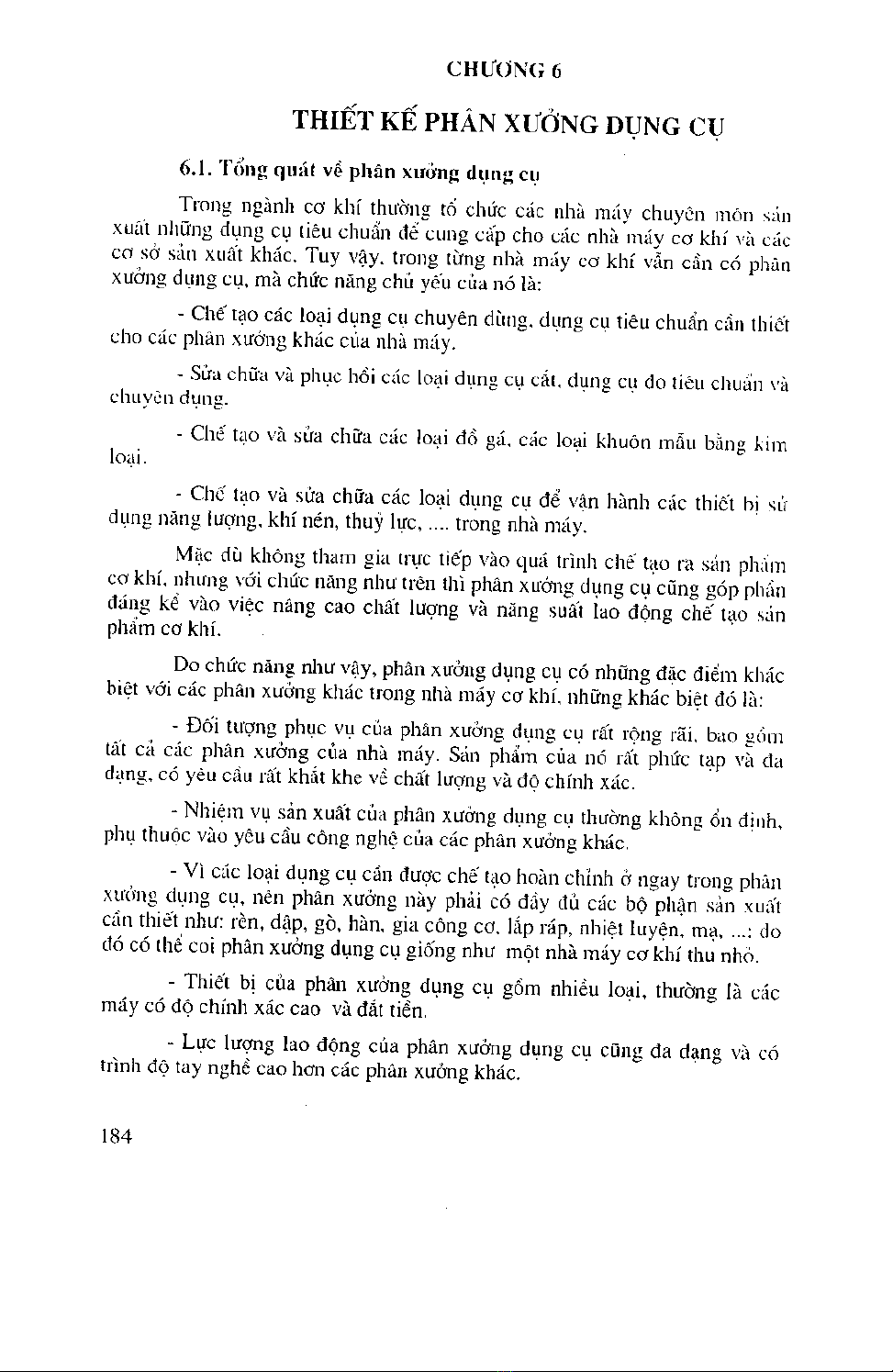 Tài liệu tham khảo giáo trình Thiết kế và qui hoạch công trình công nghiệp cơ khí gồm 09 chương dành cho sinh viên cơ khí các trường đại học kỹ thuật thuộc các hệ đào tạo - Chương 6 Thiết kế phân xưởng dụng cụ