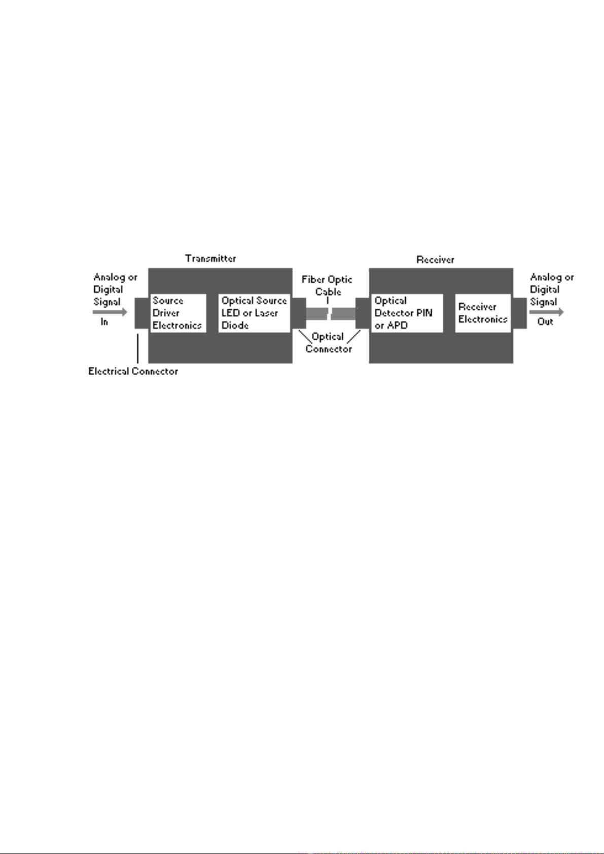 hai điểm, gồm một bộ phát, một cáp quang và một bộ thu. Bộ phát biến đổi các tín hiệu