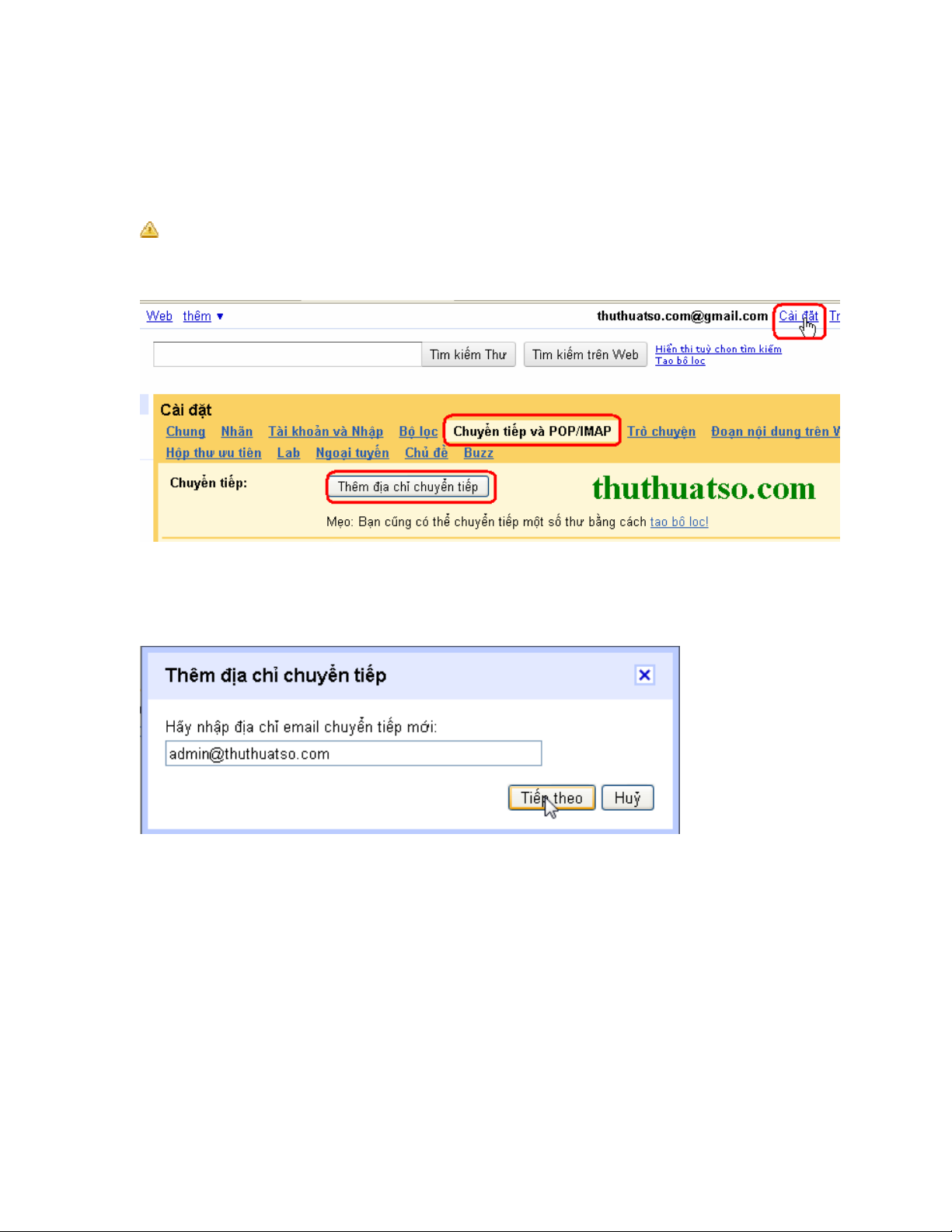 và POP/IMAP -> “Thêm địa chỉ chuyển tiếp” như trong