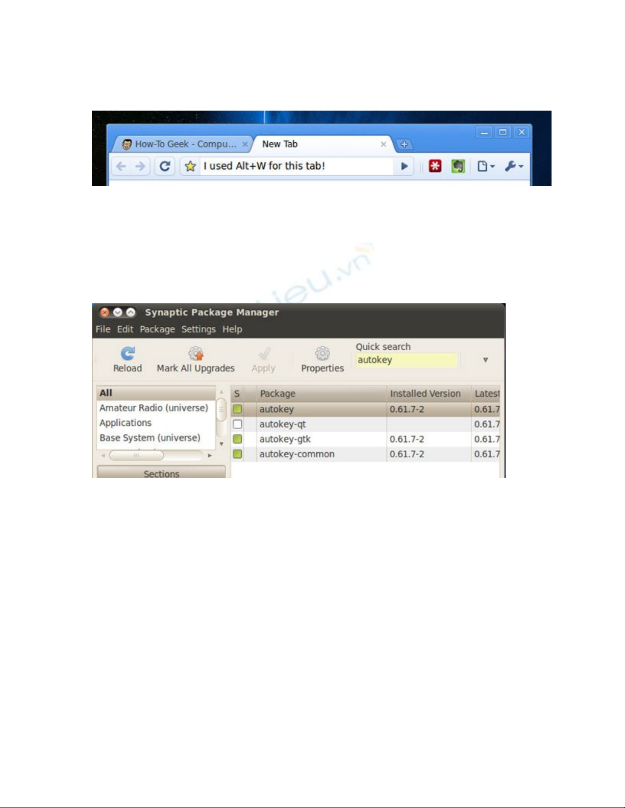 ứng dụng Synaptic Package Manager, tìm kiếm với từ khóa