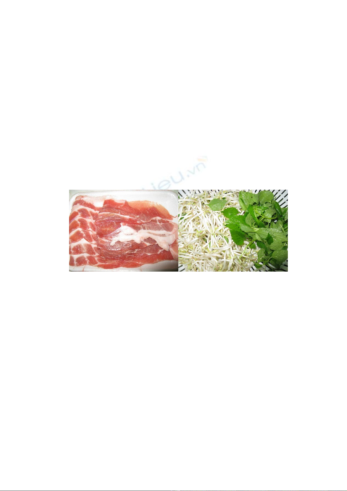 Thịt ba chỉ thái mỏng thành những miếng dài khoảng 10cm. Mình có thể mua tại các siêu