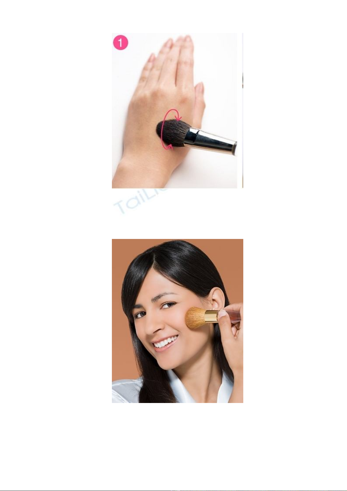 hồng lên má, hãy xoay cọ ra mu bàn tay để lấy bớt lượng phấn hồng đi.