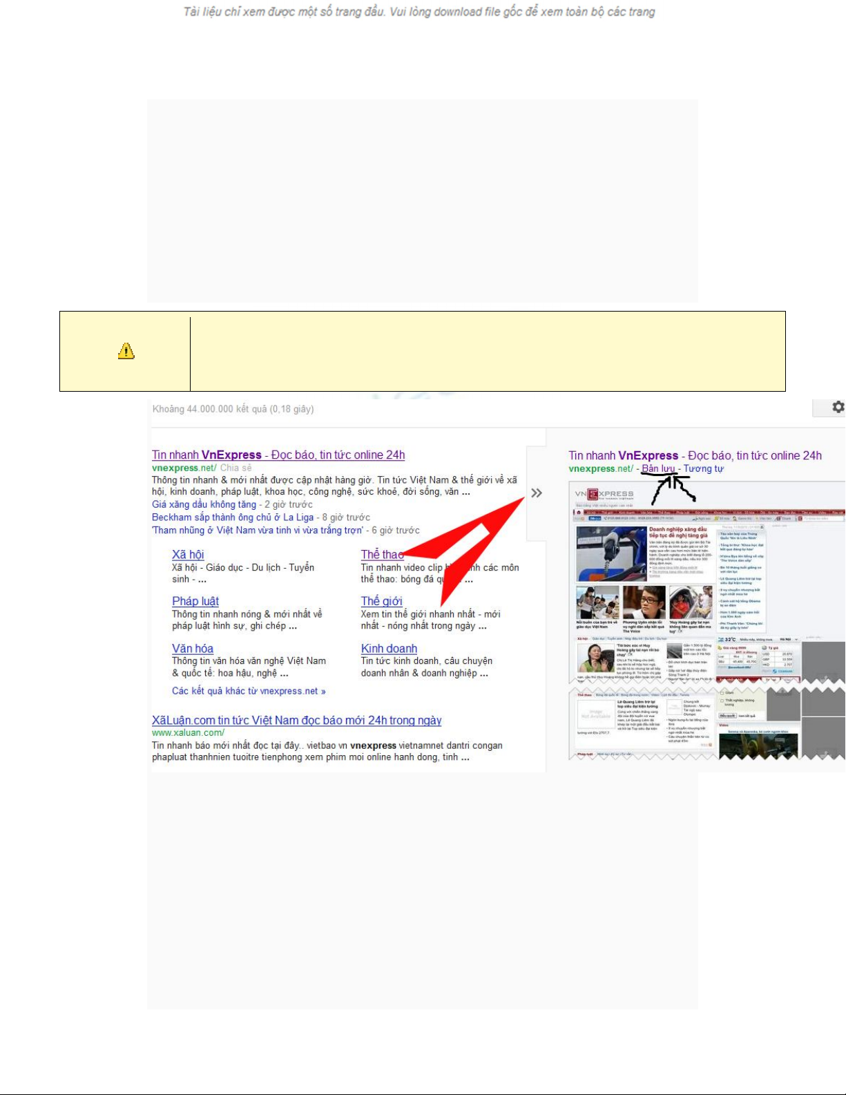 hiện khi bạn di chuyển chuột tới phía bên phải kết quả tìm