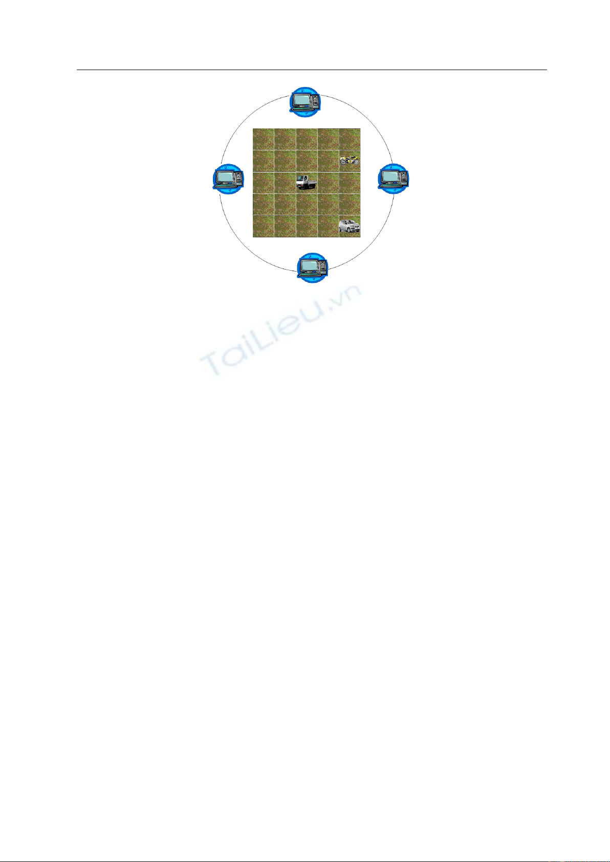 chương trình cài đặt trên các Server, các chỗ trong bãi đỗ xe là các tài nguyên. Tại mỗi trạm sẽ