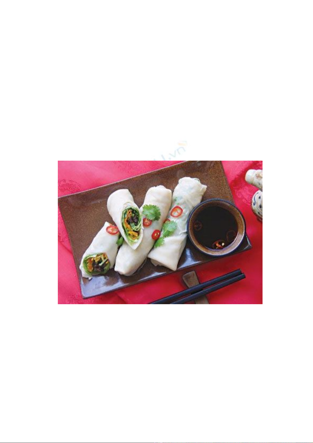 tròn, chặt tay. Bày phở cuốn ra đĩa, rắc rau mùi, ớt thái lát lên trên. Ăn kèm nước