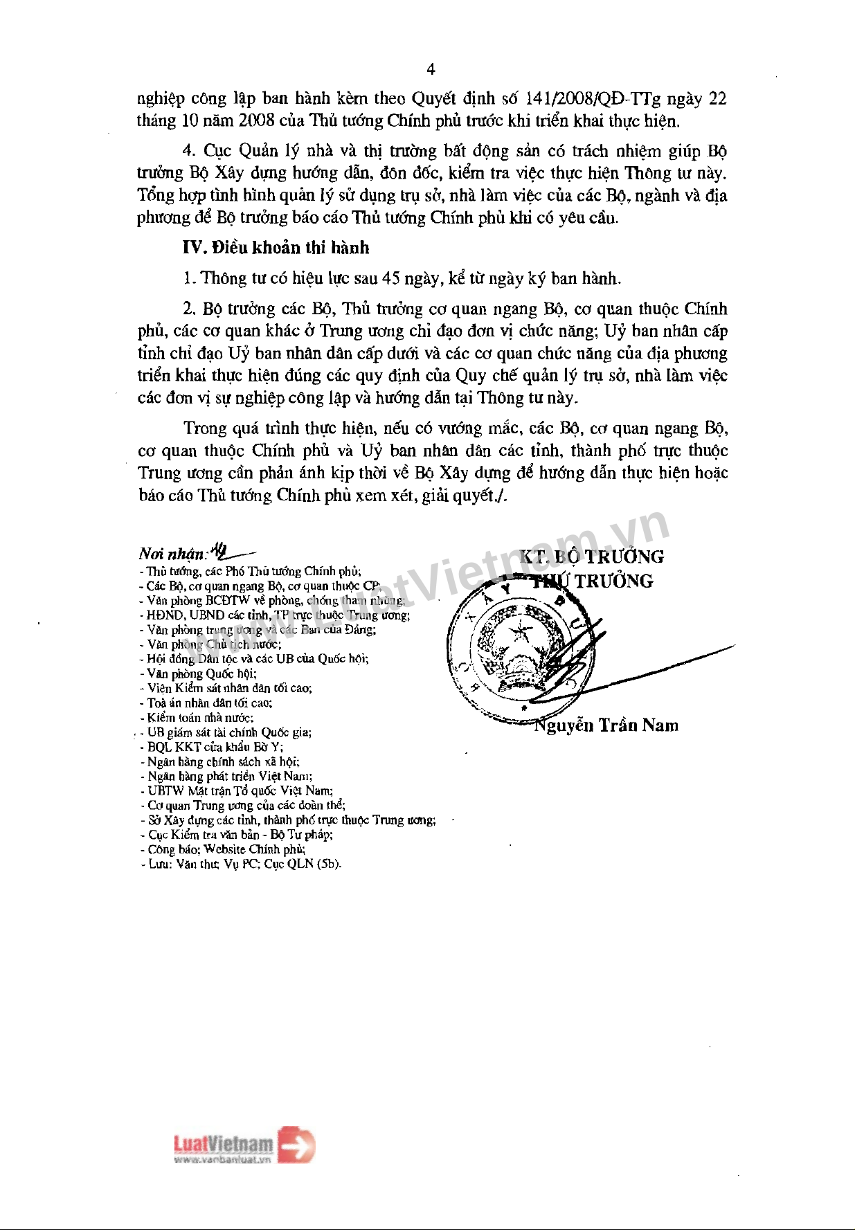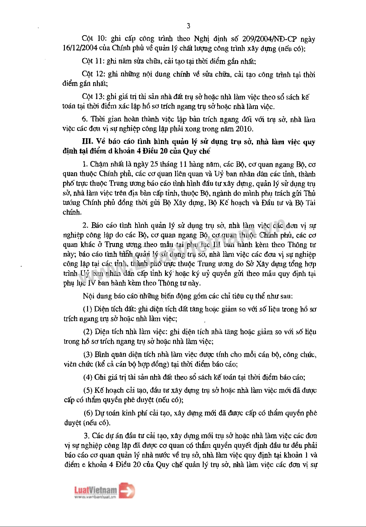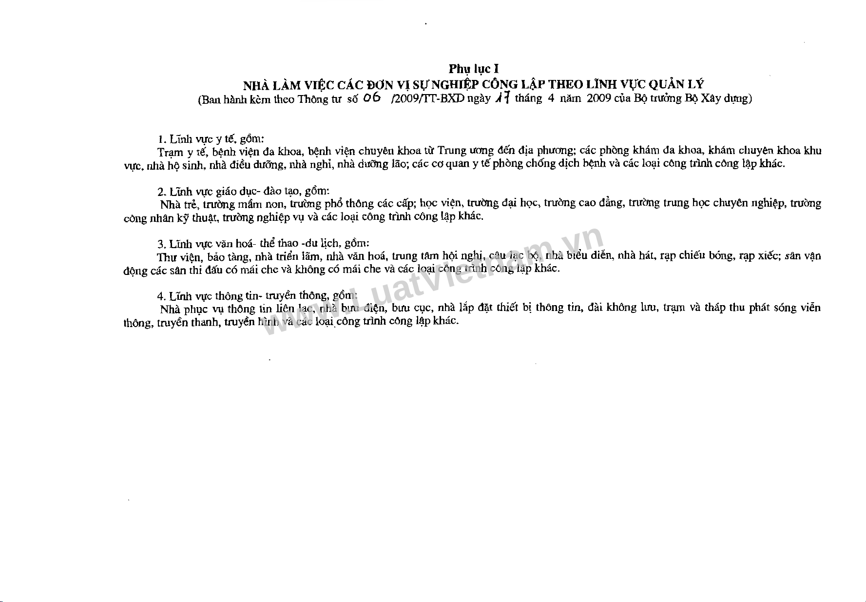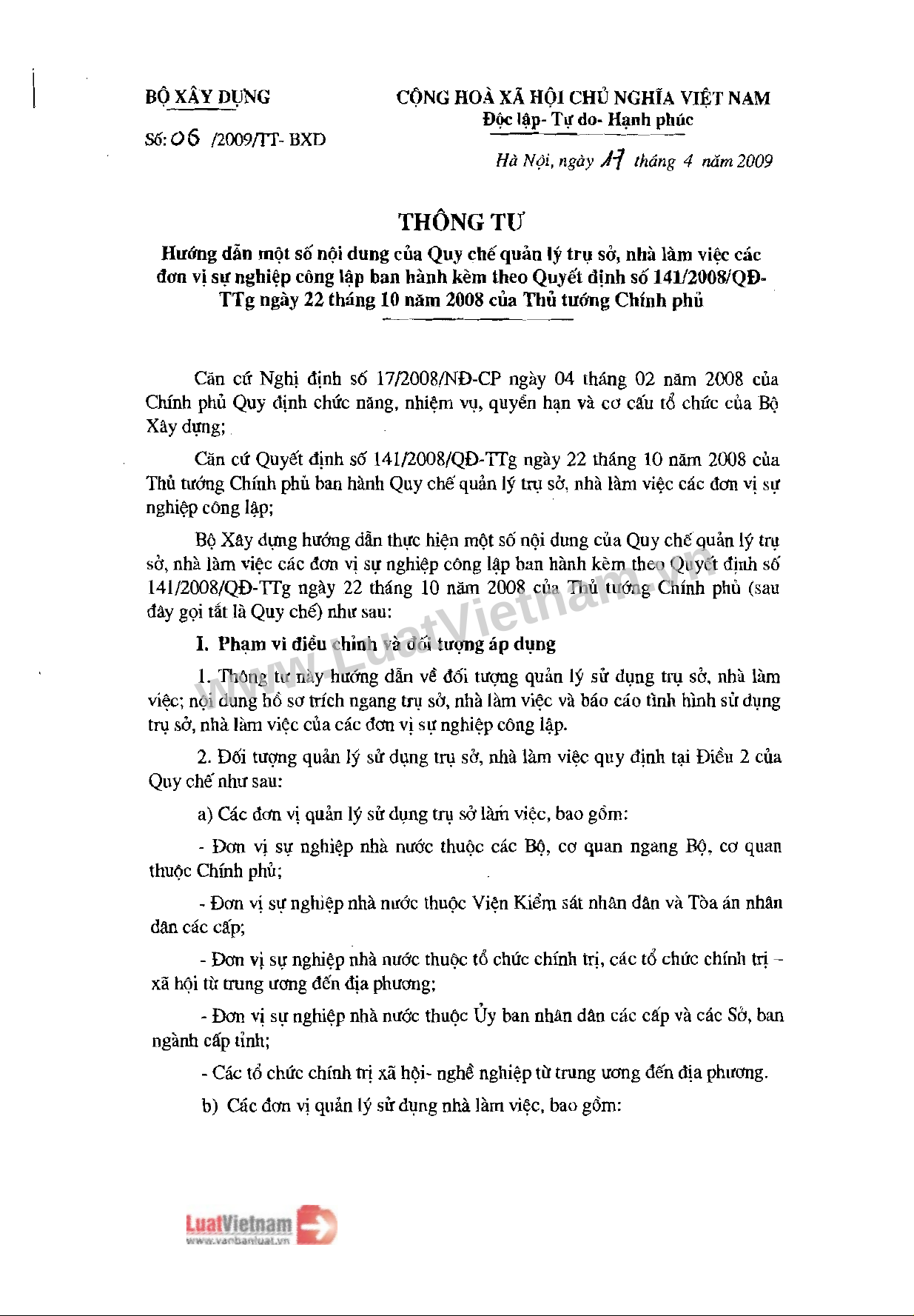 Thông tư 06/2009/TT-BXD của Bộ Xây dựng hướng dẫn một số nội dung của Quy chế quản lý trụ sở, nhà làm việc các đơn vị sự nghiệp công lập ban hành kèm theo Quyết định số 141/2008/QĐ-TTg ngày 22 tháng 10 năm 2008 của Thủ tướng Chính phủ