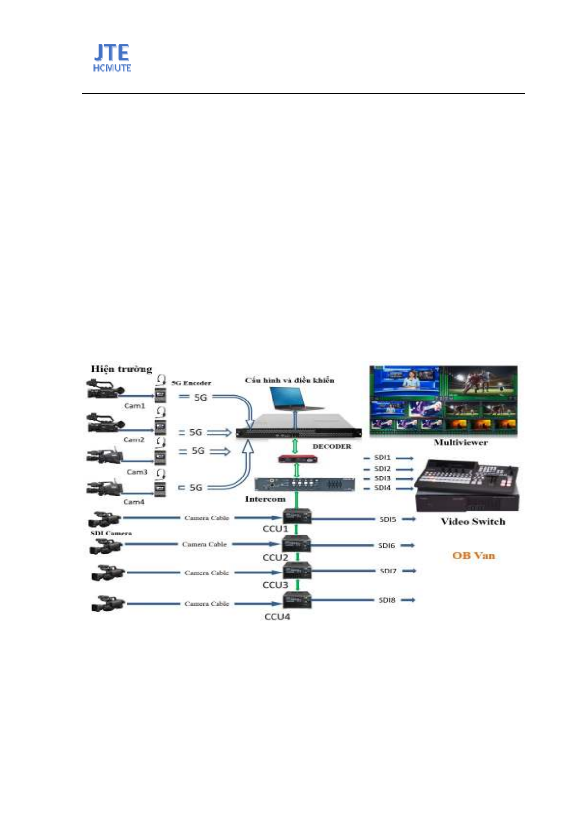 các Camera SDI có dây, được điều khiển tập trung qua bộ CCU, và đưa tín hiệu về Video Mixer, và mô