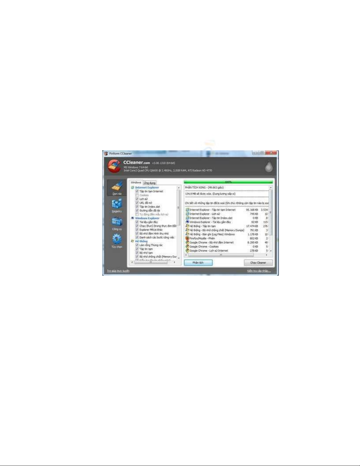 Ccleaner là phần mềm miễn phí, cho phép thực hiện các chức