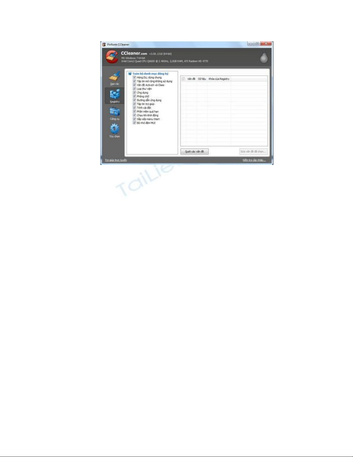 - Registry: quét và kiểm tra các vấn đề gặp phải trên registry c