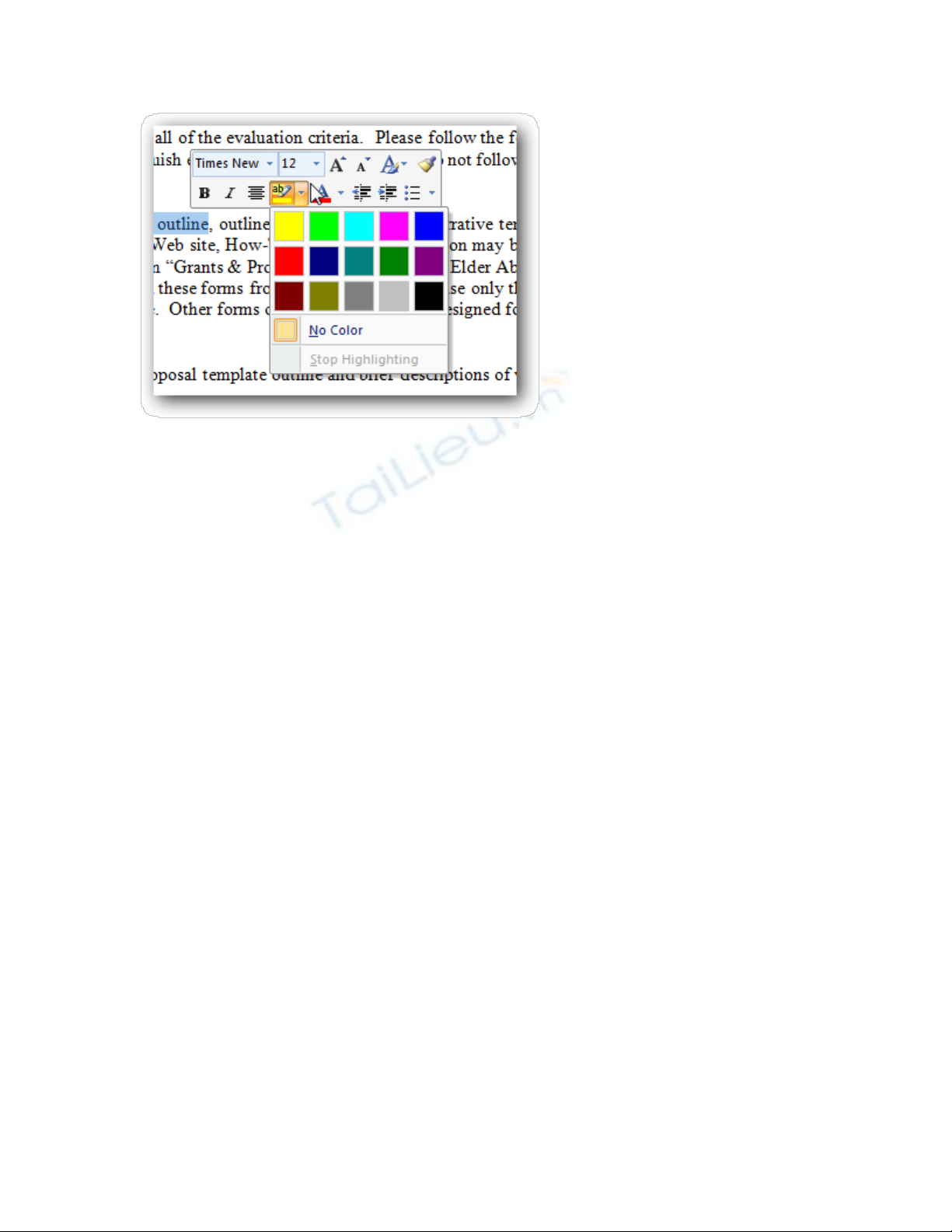 thanh Mini Formatting cha nhng tính năng mi ca Office 2007.