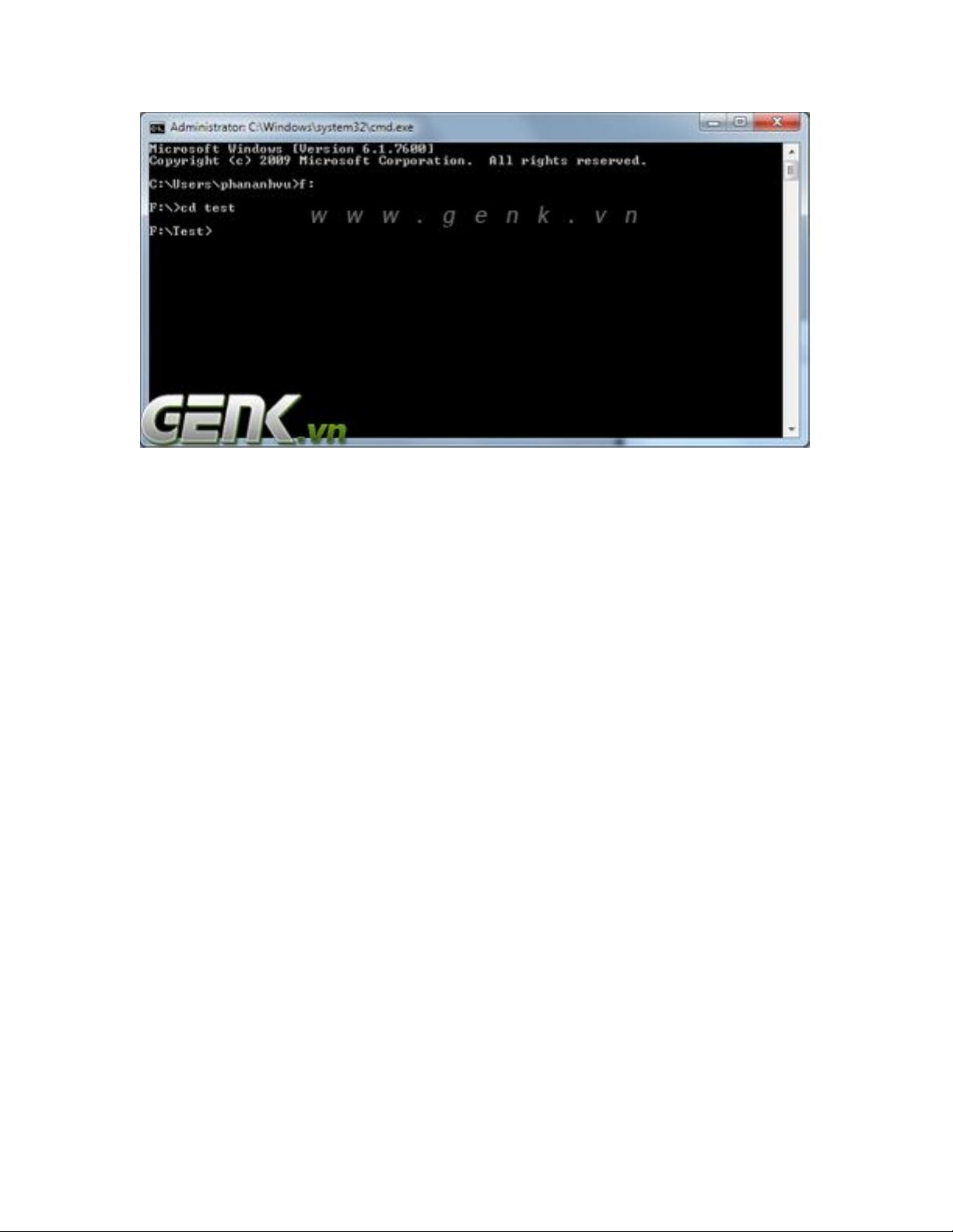 Tại cửa sổ Command Promt, tìm đến thư mục chứa 2