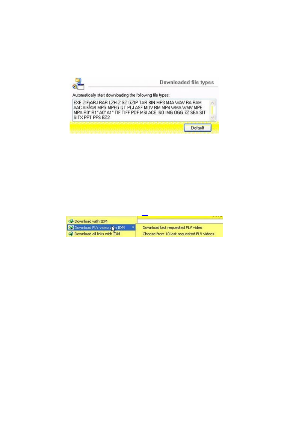 Dòng Automatically start downloading the following file types, nh n phím ấDefault, ngay
