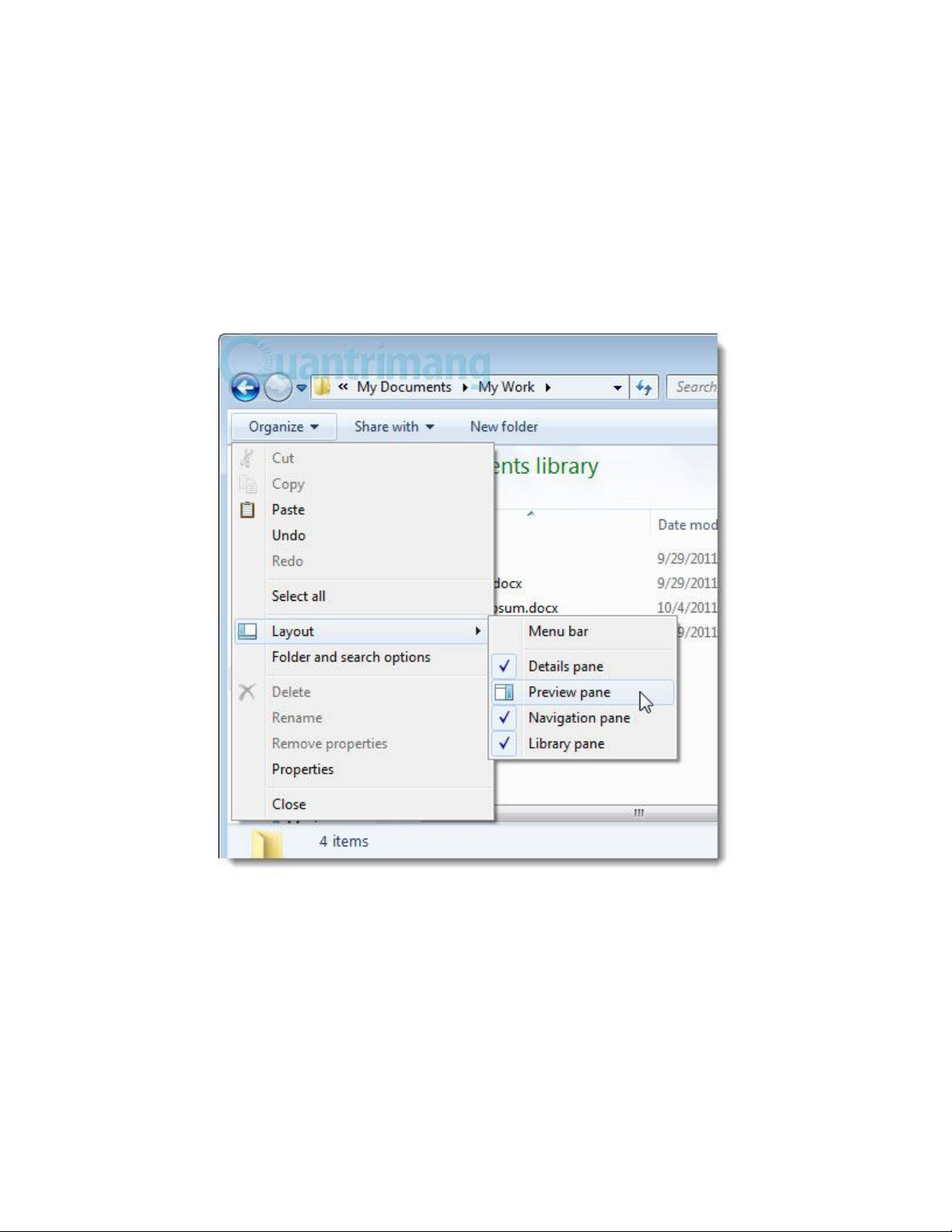 Layout, chn Preview paneDetails pane (nếu được chọn sẽ có mt dấu tích