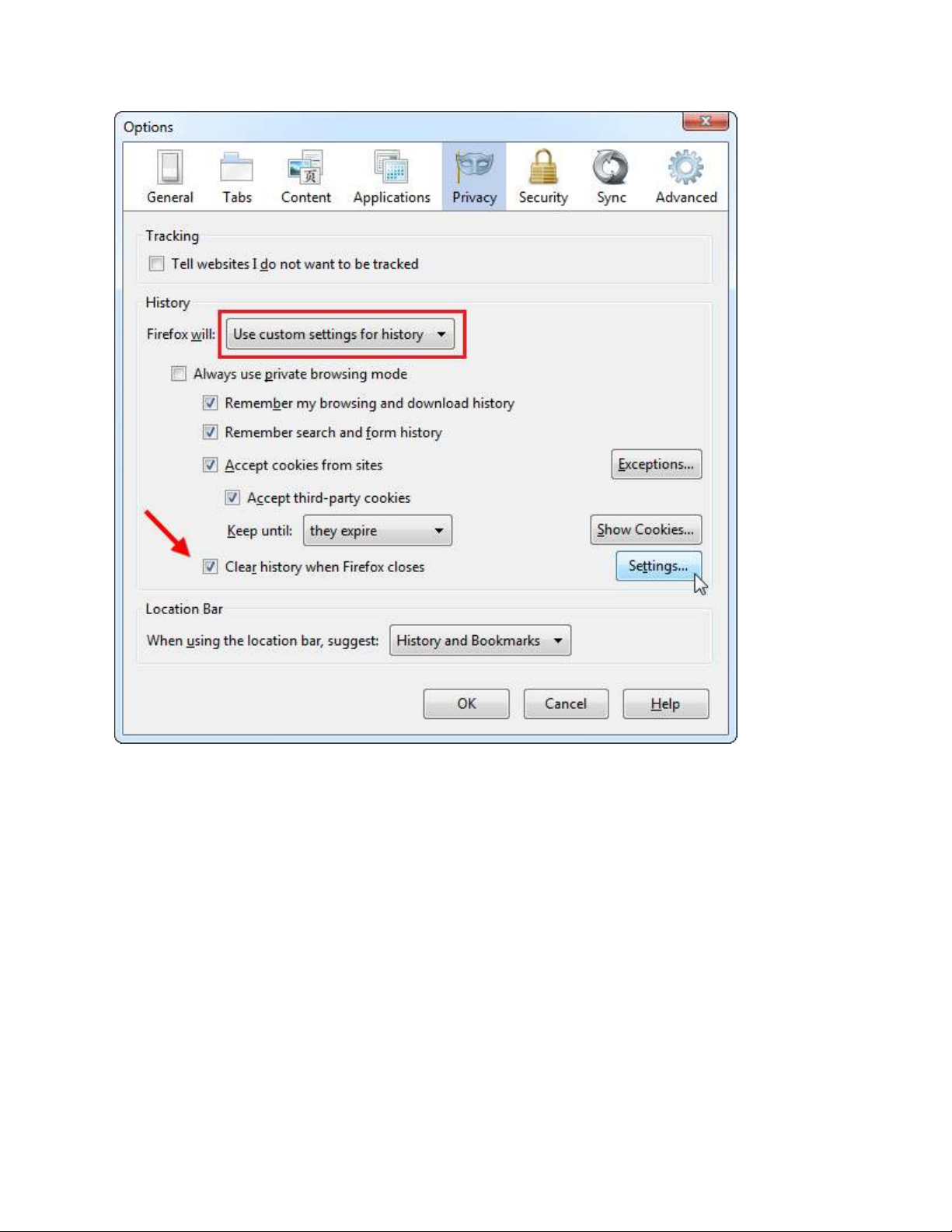 dụng thiết lập tùy biến cho lược sử). Tích vào hộp kiểm Clear history when