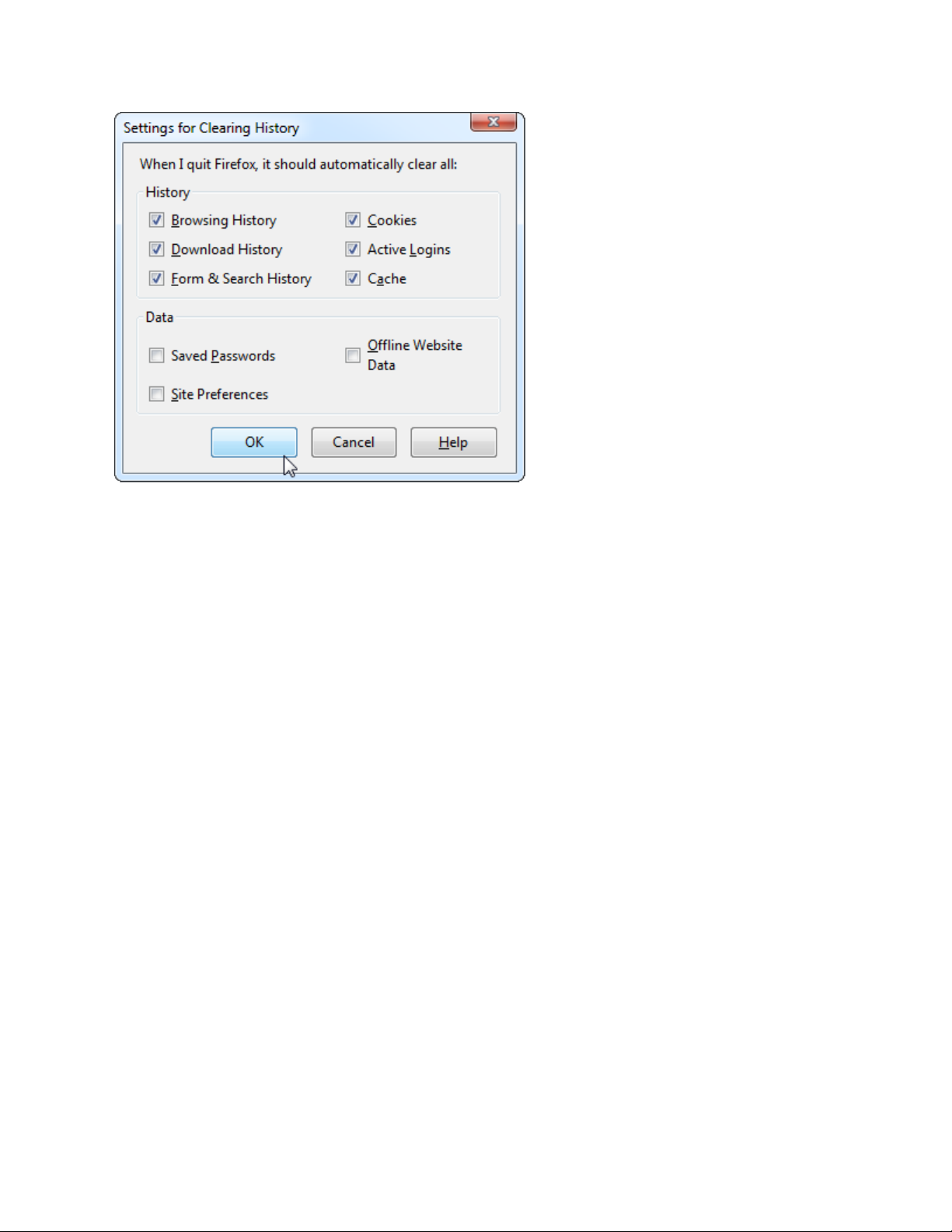 Để kiểm soát những loại dữ liệu riêng tư nào sẽ bị Firefox tự động xóa, bấm vào