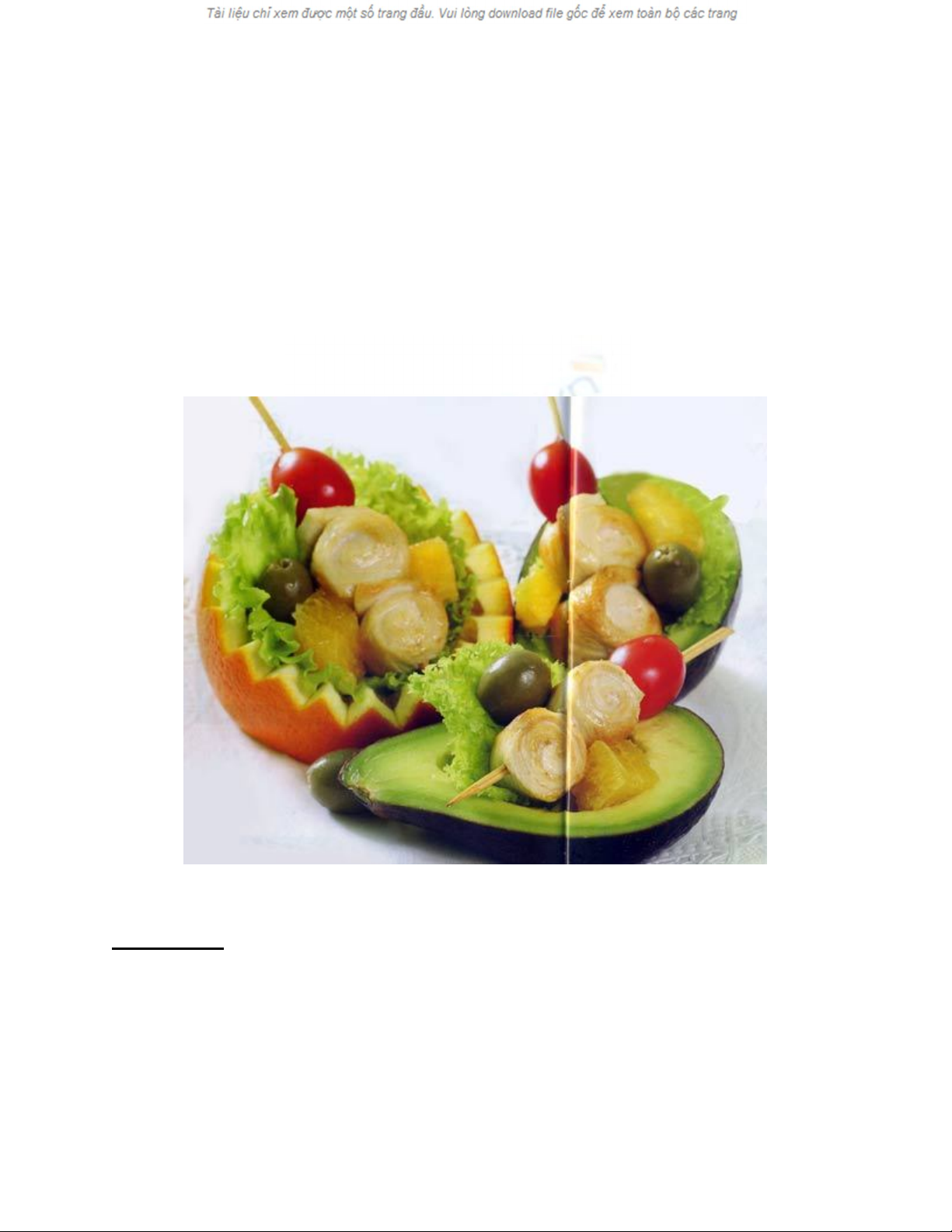 1 trái bơ, 1 muỗng canh trái ô-liu, 1 củ tỏi, ½ trái cam Mỹ, vài lá xà lách