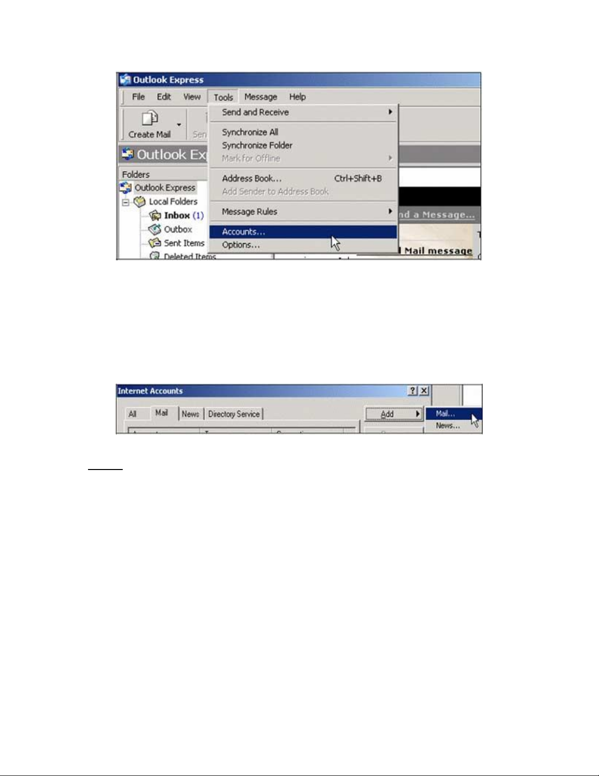 Mở Outlook Express từ menu chọn Tools, chọn Accounts.