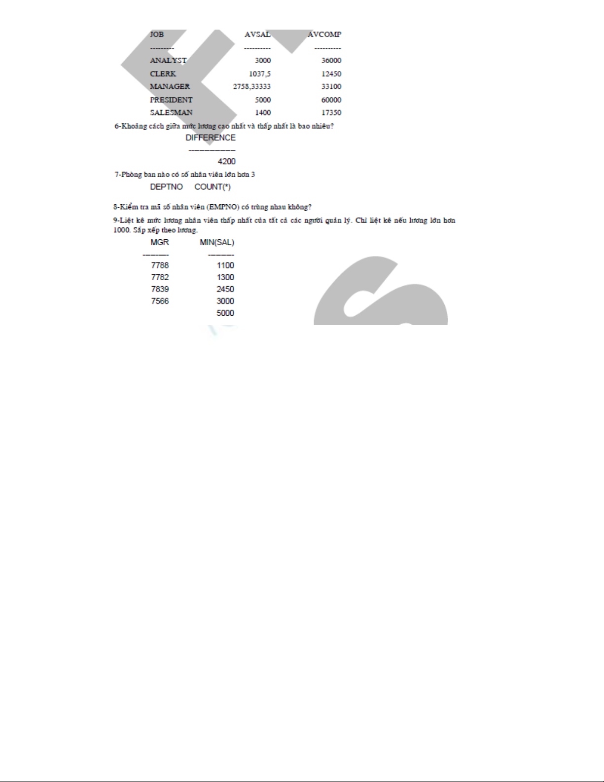 2. Vi t câu l nh sao cho k t qu nh sau ế ệ ế ả ư