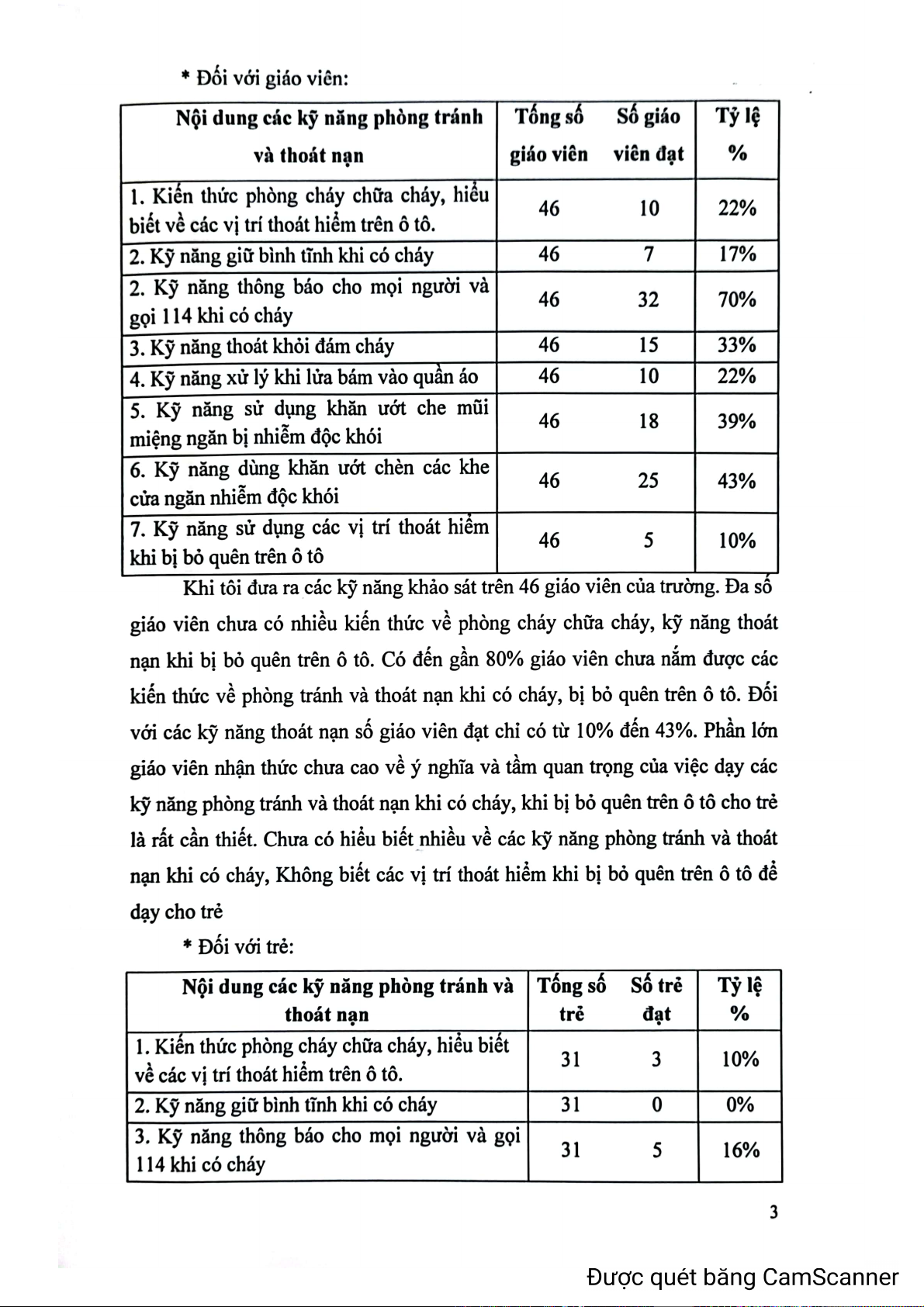 An toàn cho trẻ em, đặc biệt là trong môi trường giáo dục mầm non, luôn là ưu tiên hàng đầu, song những rủi ro từ cháy nổ và việc trẻ bị bỏ quên trên ô tô vẫn tiềm ẩn nhiều nguy cơ. Thực trạng này đòi hỏi các giải pháp giáo dục kỹ năng sống toàn diện và hiệu quả. Sáng kiến này nhằm xây dựng và triển khai các biện pháp thiết thực để trang bị cho trẻ mầm non, đặc biệt là trẻ 5-6 tuổi, những kỹ năng phòng tránh và thoát nạn cần thiết. Mục tiêu là nâng cao nhận thức, năng lực ứng phó cho trẻ, đồng thời tạo cơ hội cho giáo viên và phụ huynh chủ động hơn trong việc bảo vệ sự an toàn cho các em.