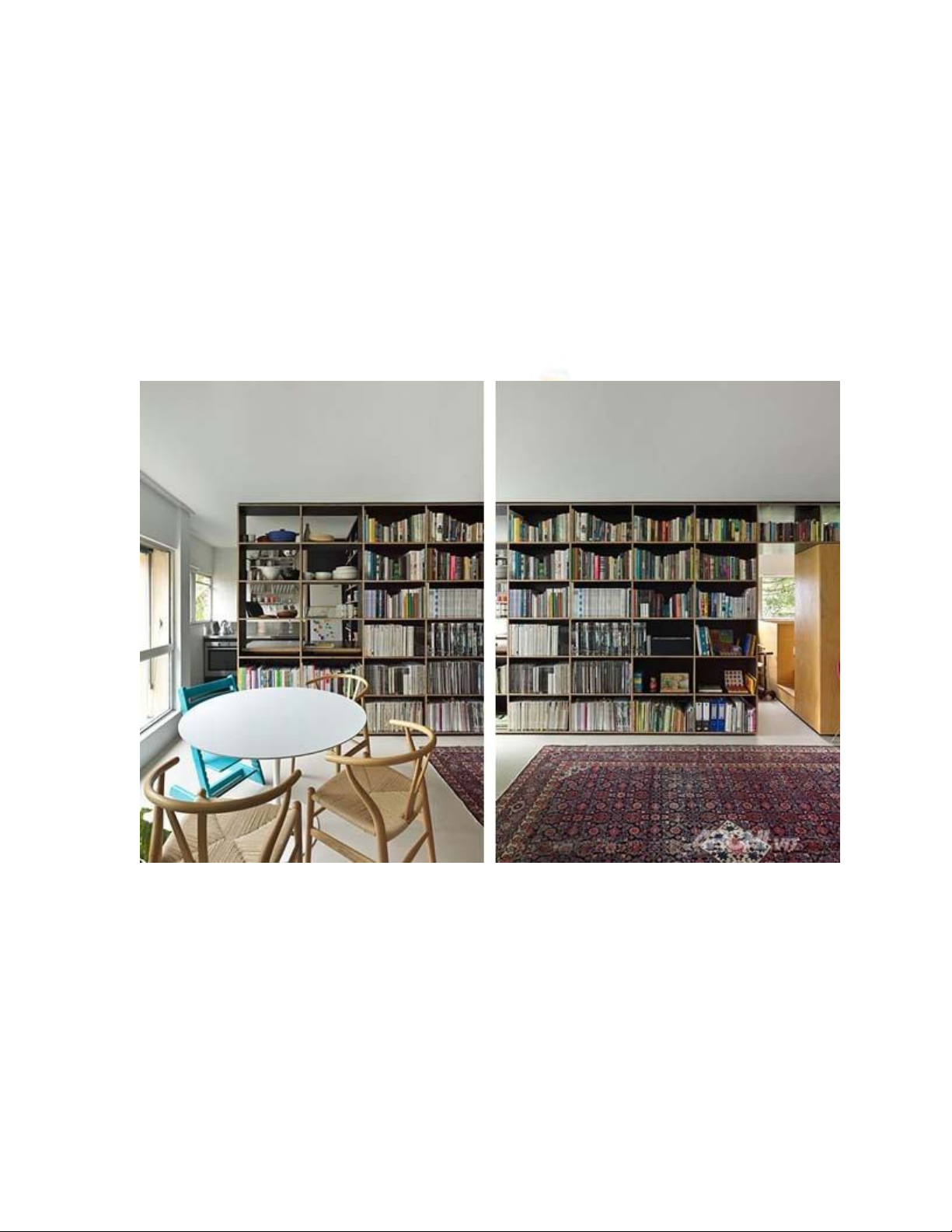 nề khiến cho ngôi nhà như nhỏ hẹp hơn. Thay vào đó là những kệ và tủ vừa giải