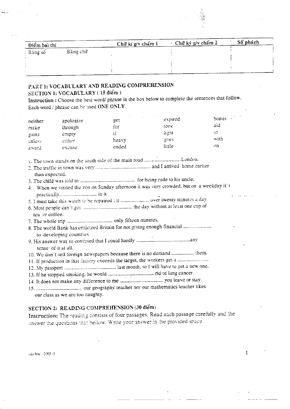 PART 1: YOCABCL\RY AND READlXG COMPREHEN51O'-"