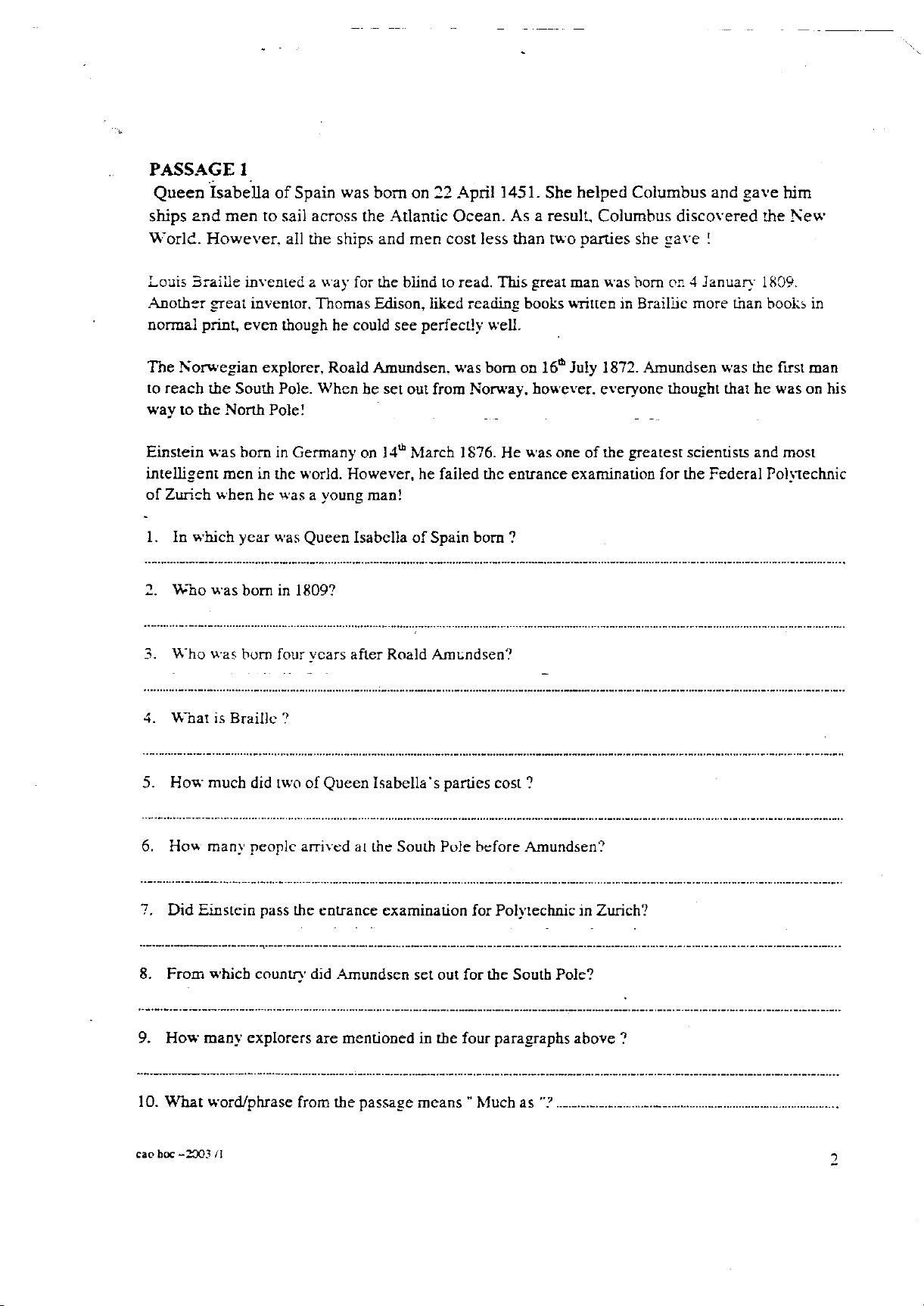 Instruction: The "e2ui::; :ons;sts of four passages. Read e:lch passage carefully ami :,':1e