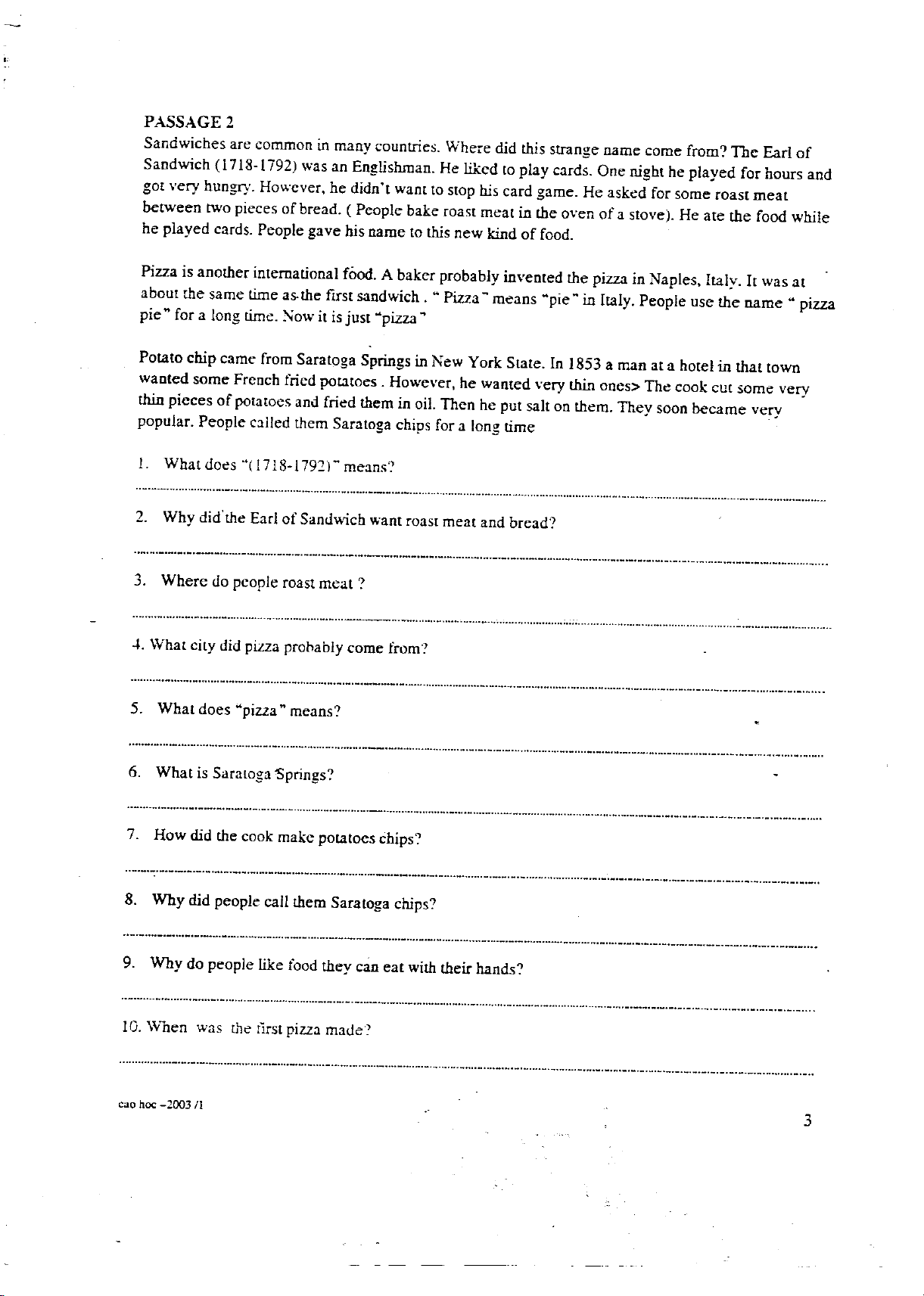 2. Why did' the Earl of Sandwich Want roast meat and bread')