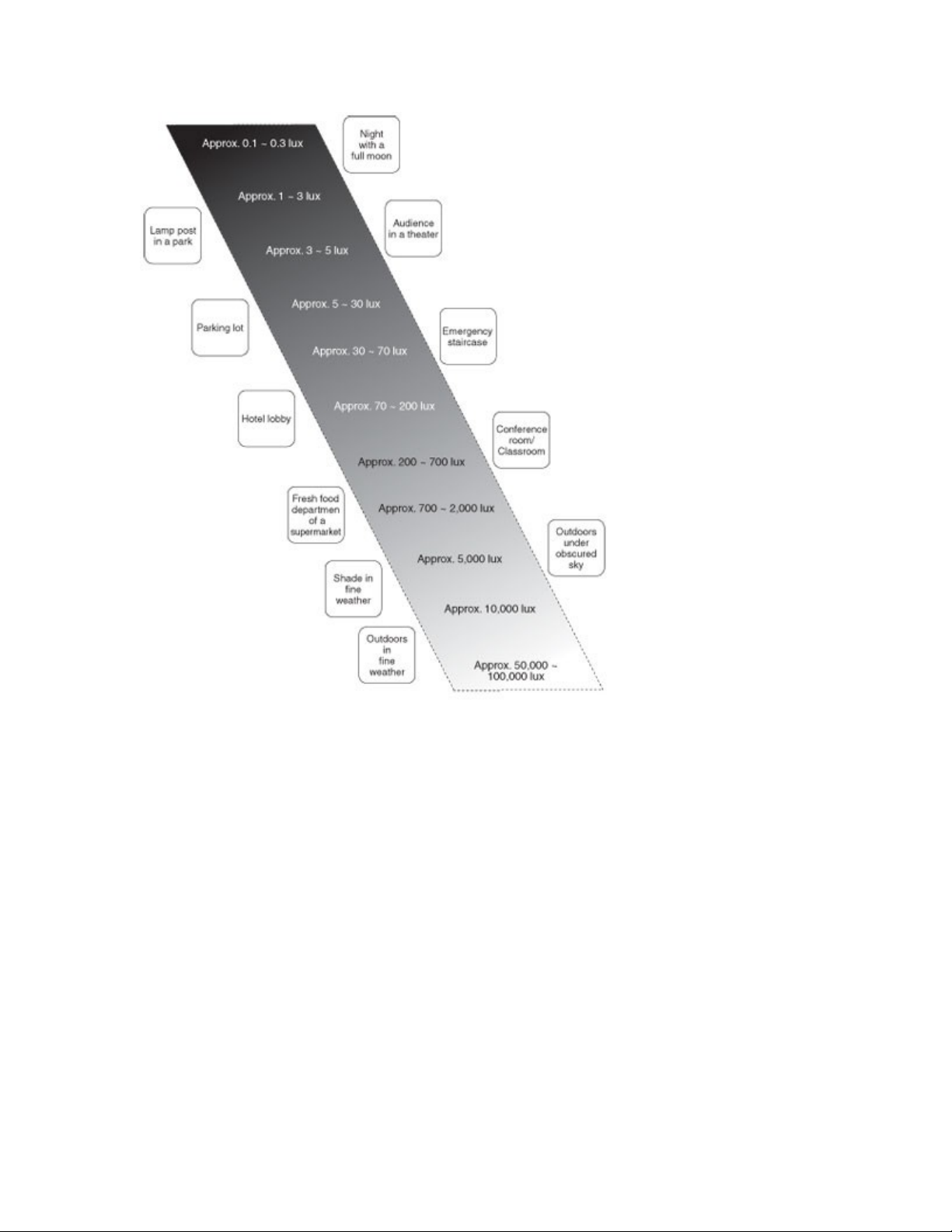 * Vào th i đi m hoàng hôn và bình minh, ánh sáng ngoài tr i cũng có đ r i kho ng 400 lux (n u tr i trongờ ể ờ ộ ọ ả ế ờ