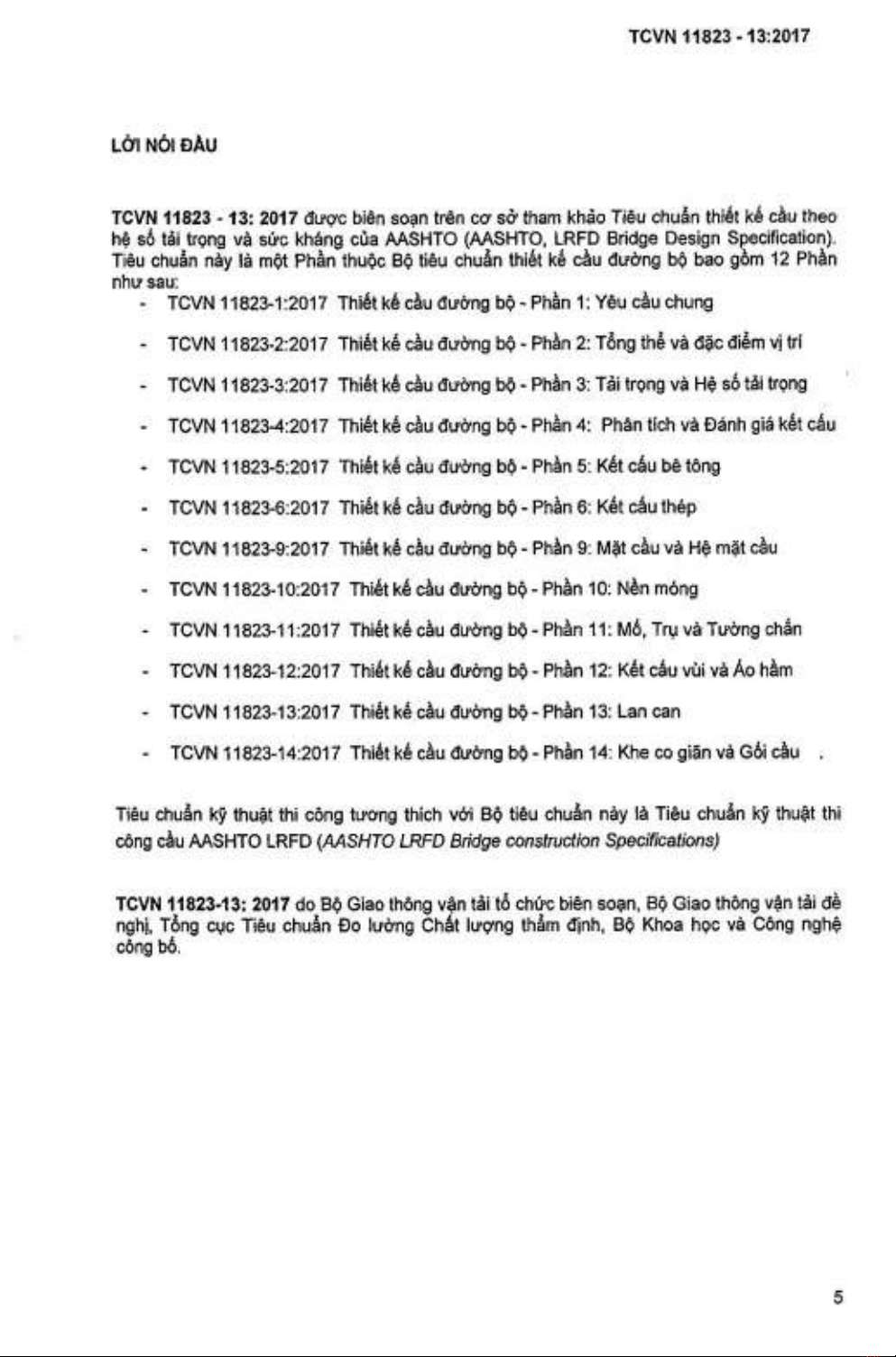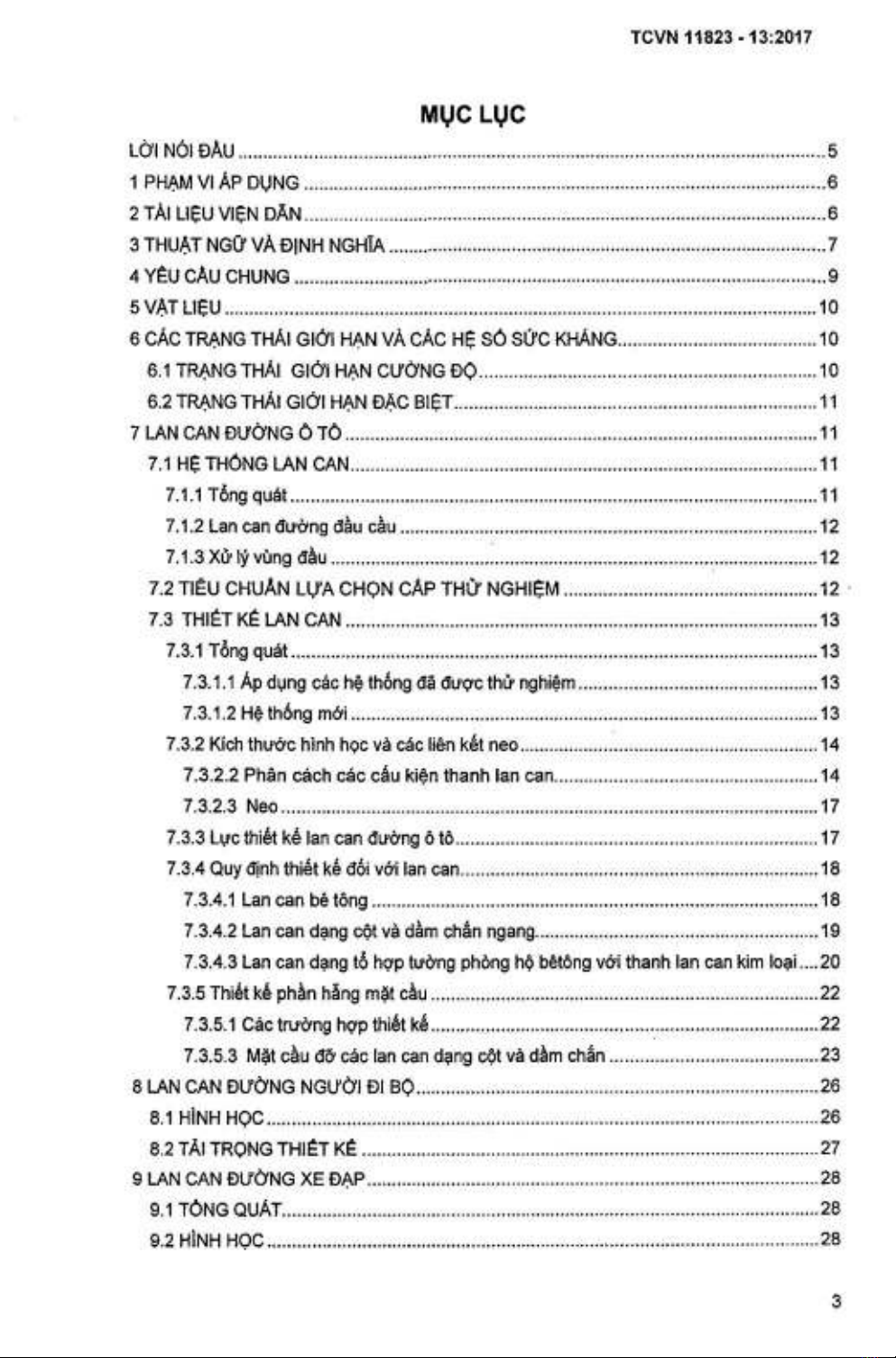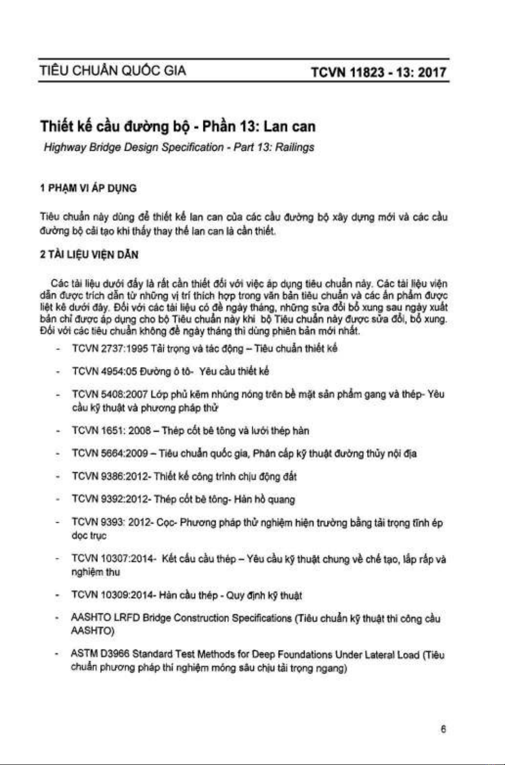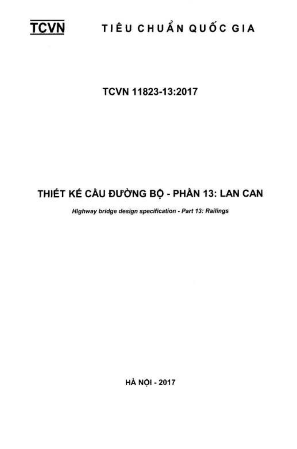 Tiêu chuẩn Quốc gia TCVN 11823-13:2017 dùng để thiết kế lan can của các cầu đường bộ xây dựng mới và các cầu đường bộ cải tạo khi thấy thay thế lan can là cần thiết. Mời các bạn cùng tham khảo chi tiết nội dung tiêu chuẩn.