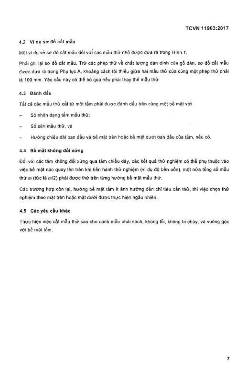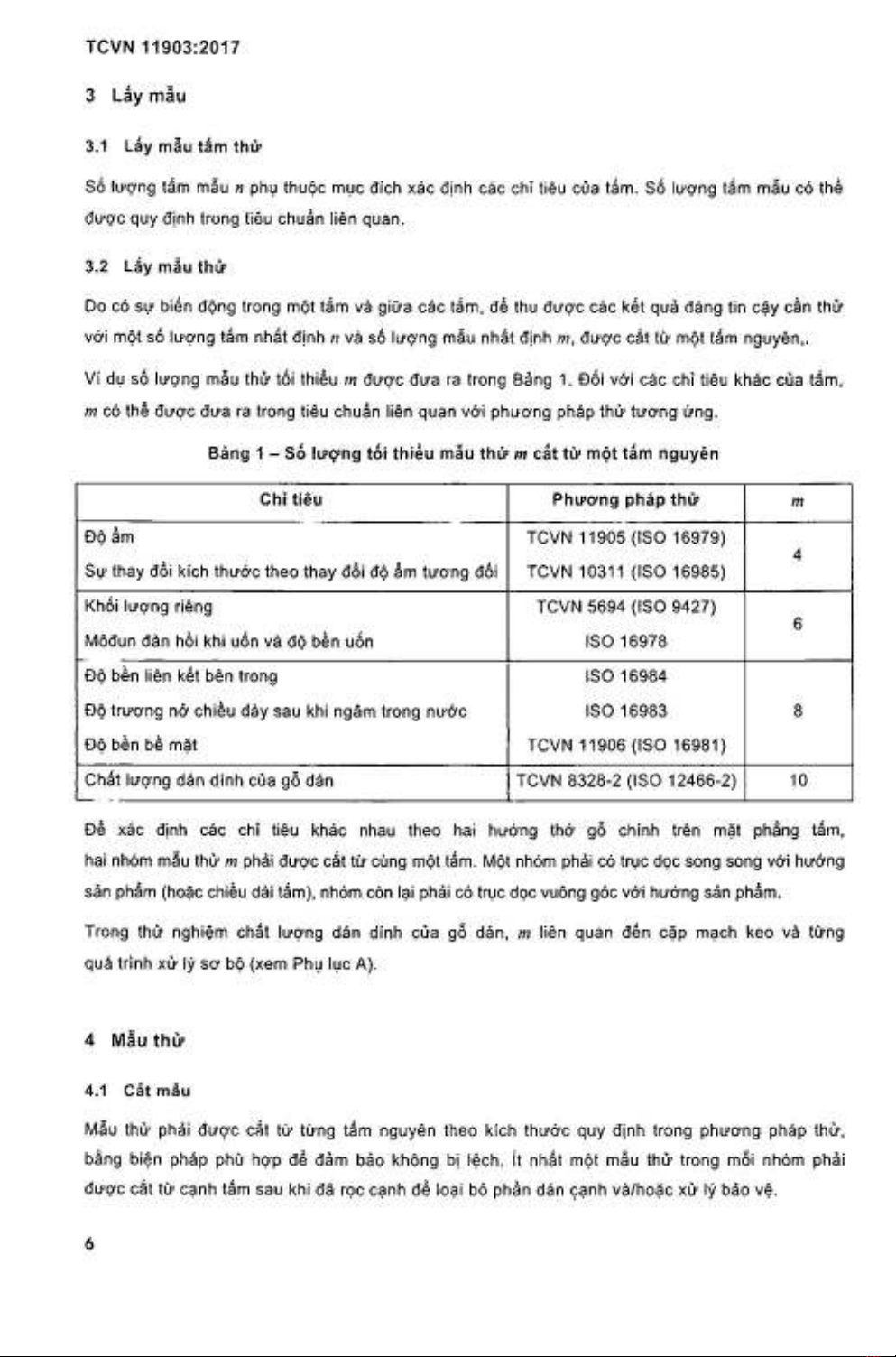Tiêu chuẩn Quốc gia TCVN 11903:2017 qui đinh một số nguyên tắc nhất định trong việc lấy mẫu và cắt mẫu thử. Tiêu chuẩn này không bao gồm việc lấy mẫu và cắt mẫu thử nghiệm để xác định các giá trị đặc trưng trong thiết kế kết cấu. Các phép thử được tiến hành trên các mẫu thử có kích cỡ trung bình.