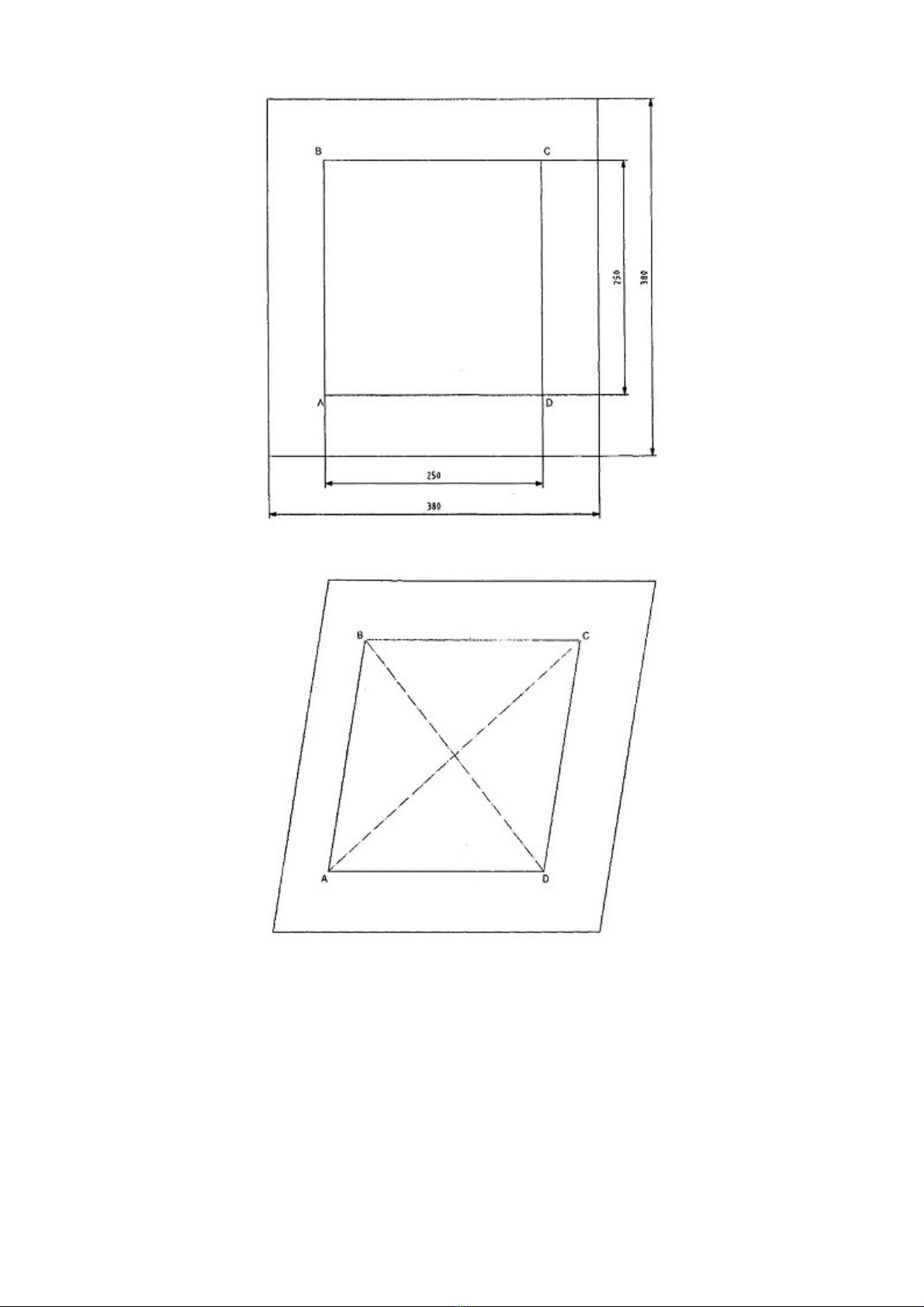 Ký hiệu các góc A, B, C và D theo chiều kim đồng hồ, bắt đầu từ góc dưới bên trái (xem Hình 1).