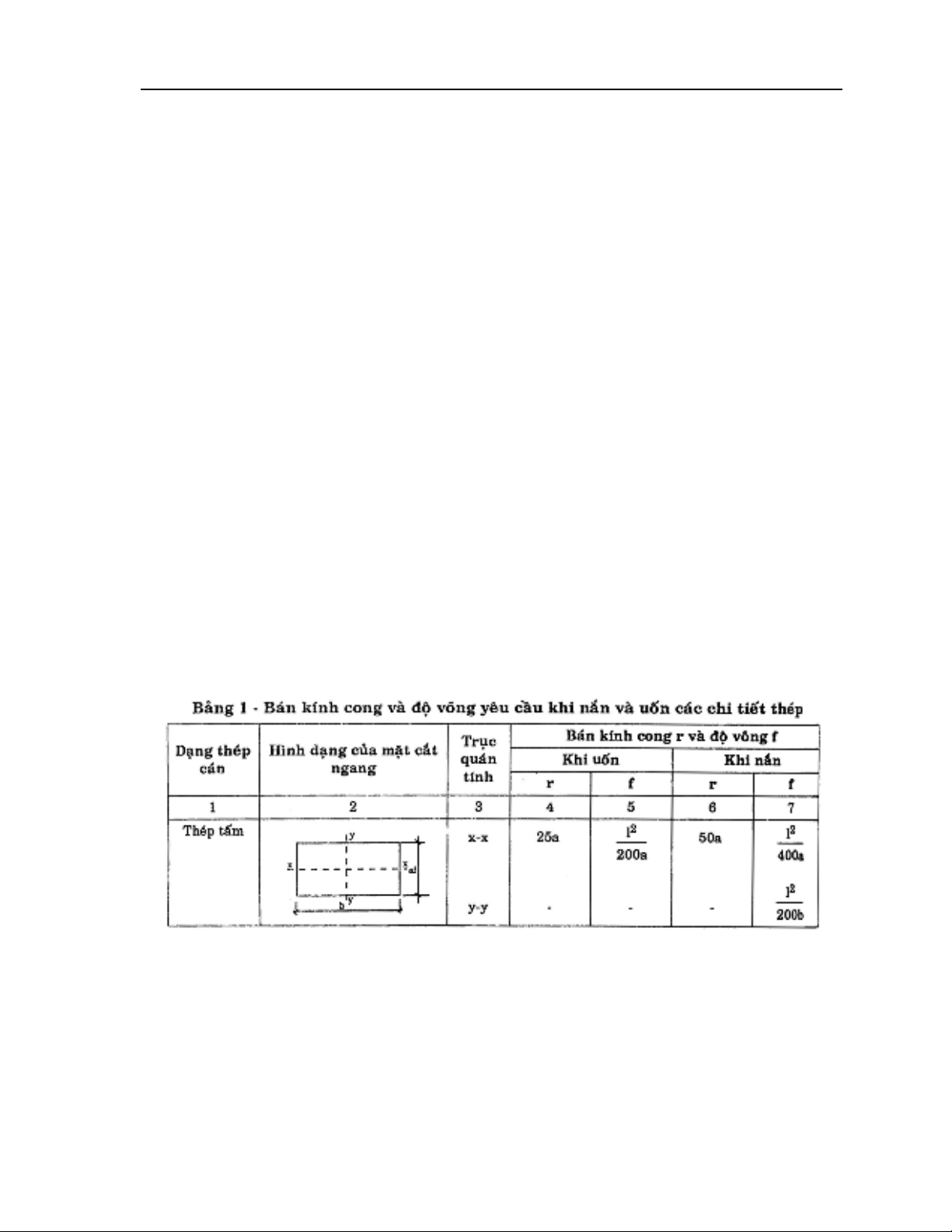 B¶ng 1 – B¸n kÝnh cong vµ ®é vâng yªu cÇu khi n¾n vµ uèn c¸c chi tiÕt thÐp.