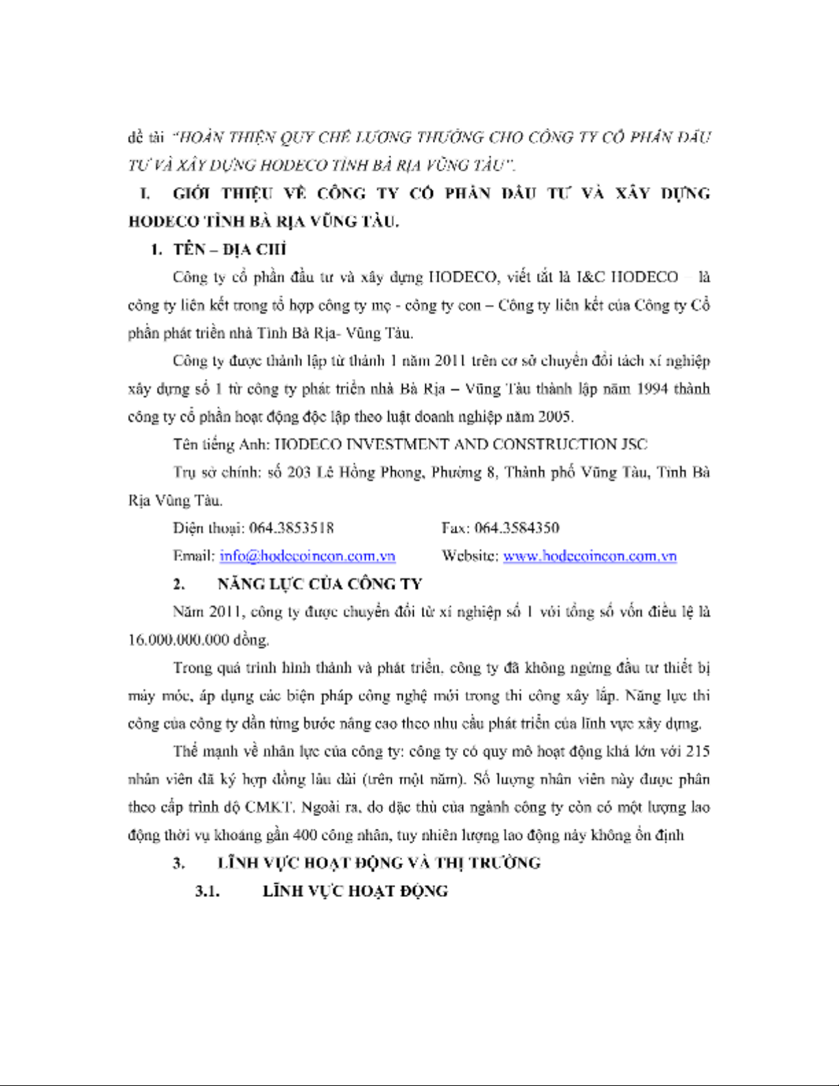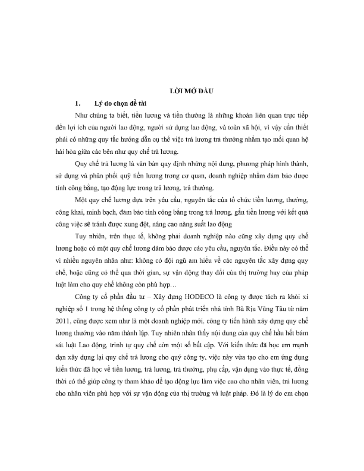 Tiểu luận: Hoàn thiện quy chế lương thưởng cho công ty CP Đầu tư và Xây dựng HODECO