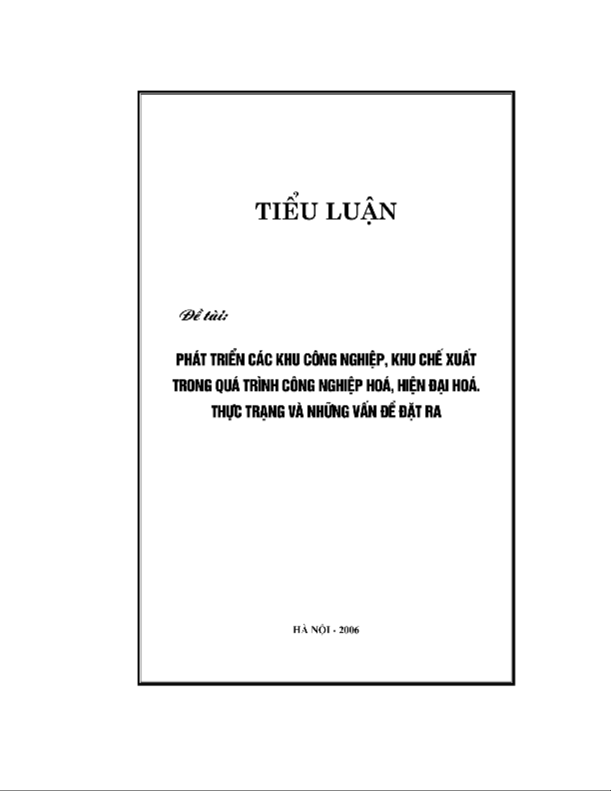 Tiểu luận: Phát triển các khu công nghiệp-khu chế xuất trong quá trình công nghiệp hóa-hiện đại hóa, thực trạng và những vấn đề đặt ra