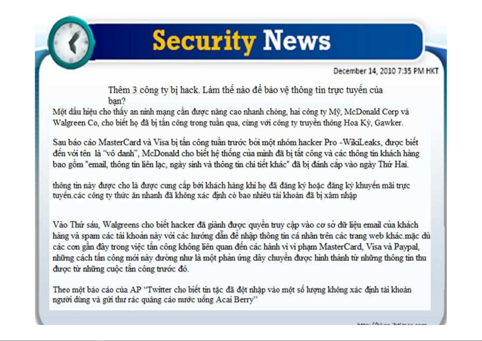 Đề tài: Tìm hiểu về An ninh mạng và một số kĩ thuật phòng chống tấn công mạng do nhóm sinh viên phối hợp thực hiện. Nội dung đề tài trình bày về các bản tin bảo mật; phòng thủ bảo mật; báo cáo về tội phạm Internet;...Mời bạn đọc cùng tham khảo.