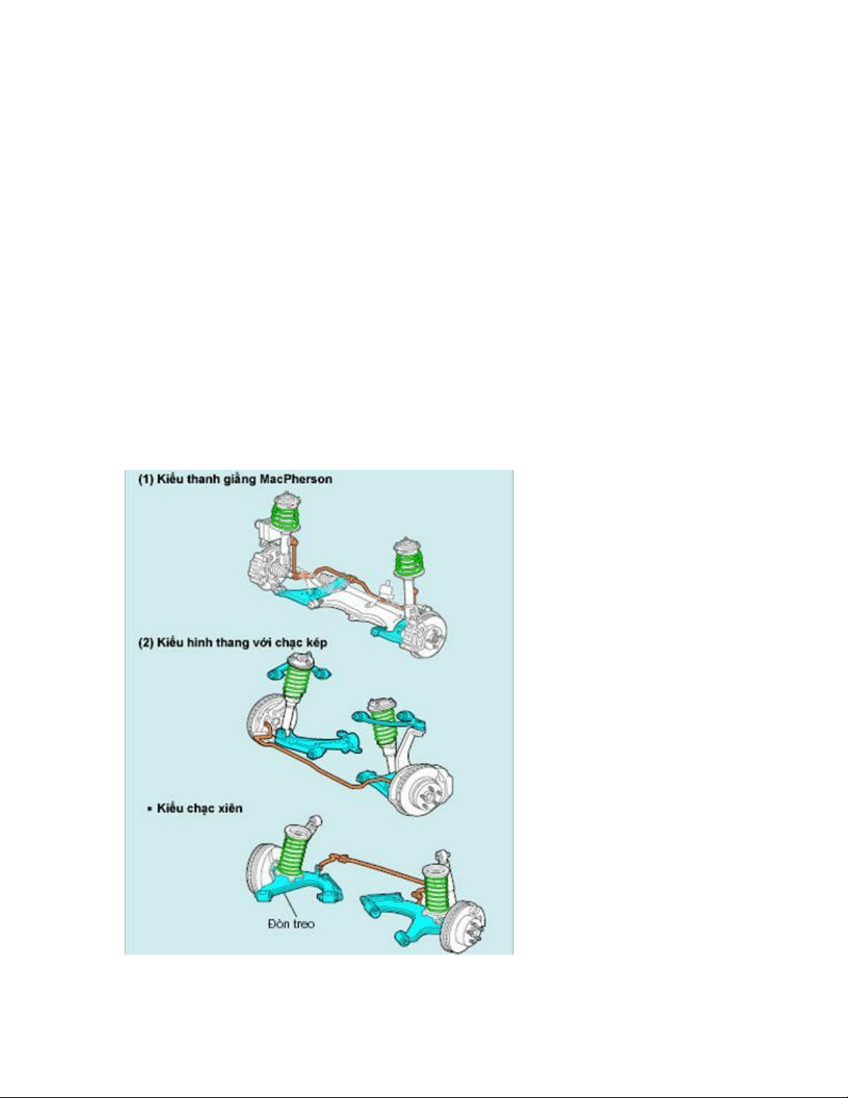 bằng các khớp nối, bộ phận đàn hồi là lò xo trụ, bộ giảm chấn là giảm chấn ống.